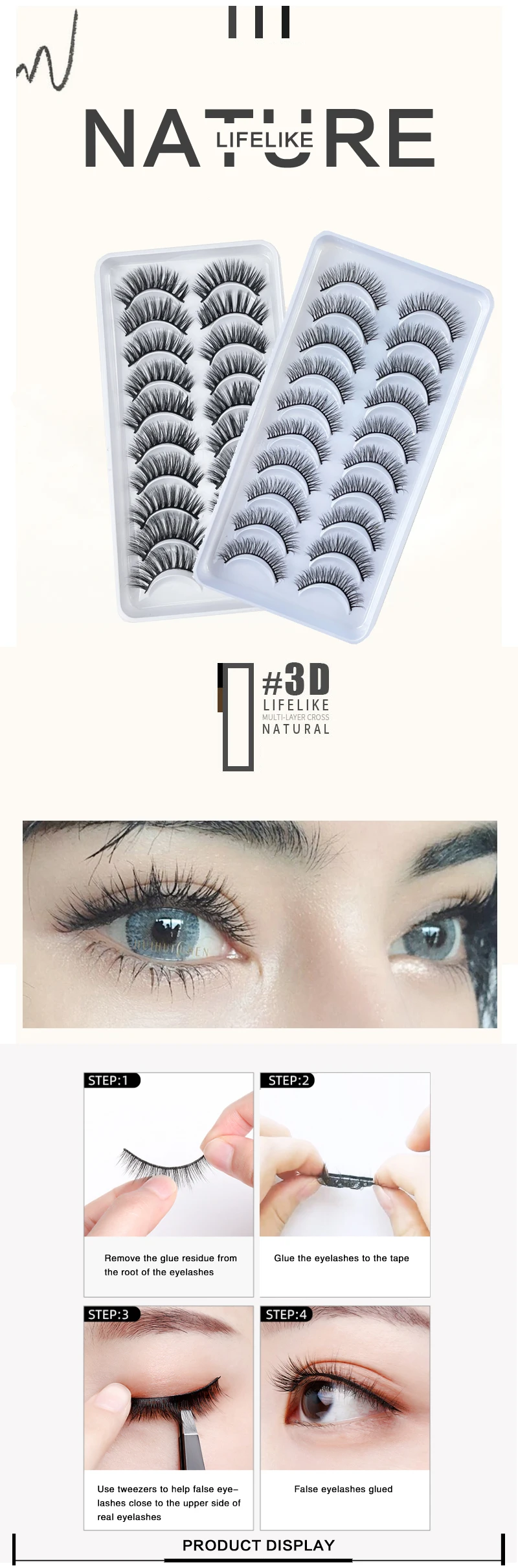 10 Pairs Eyelash 3D Natural Mink False Eyelashes Makeup Fake Eye Lashes Faux Cilios Maquillaje Make Up Tools Wholesale