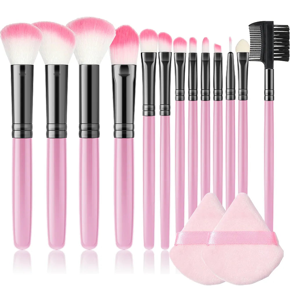 13 Pcs Pink Makeup Brushes Set Foundation Blush Powder Eyeshadow Lip Blending Beauty Makeup Tool Cosmetic with 2 Podwer Puff