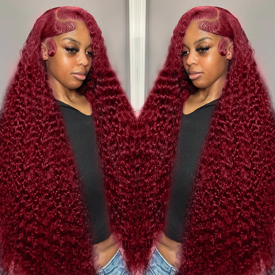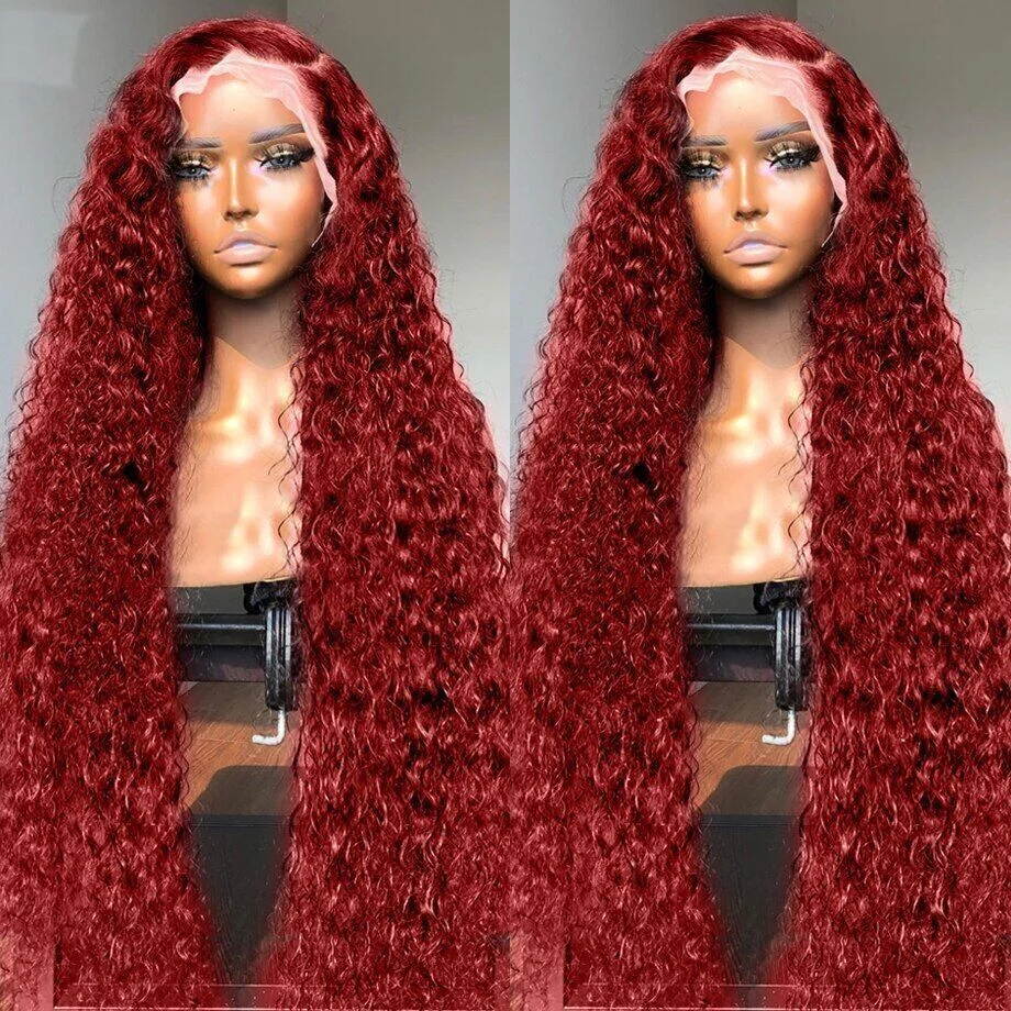 13x4 Deep Wave Frontal Wig 13x6 HD Lace Frontal Human Hair Wigs Colored 30 34 Inch Red Burgundy Curly Lace Front Human Hair Wigs