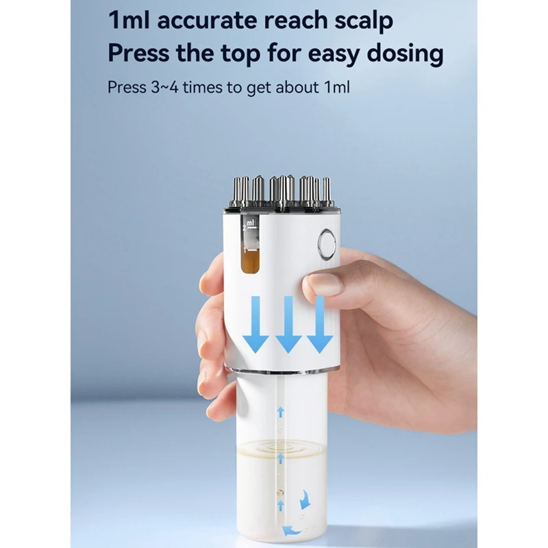 [Enjoy Relaxing Scalp Massages with High Frequency Vibrations]: The electric scalp massager comes with three optional modes - experience a soothing scalp massage with 10,000/min high-frequency vibrations and eight massager teeth that meticulously work on your scalp, promoting hair growth. The storage tank comprises corrosion-resistant material with no chemical reaction with liquid medicines.