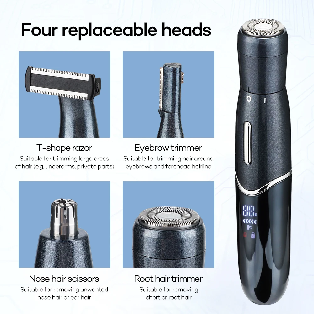 2. This 4-in-1 multifunctional shaver can be used by both men and women, and is suitable for trimming hair on multiple parts of the body, such as eyebrows, arms, legs, underarms, and more.