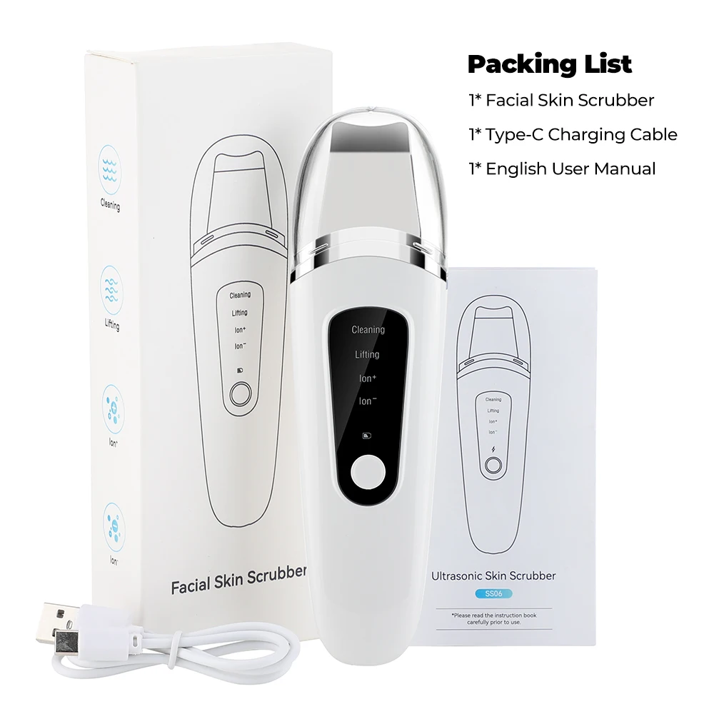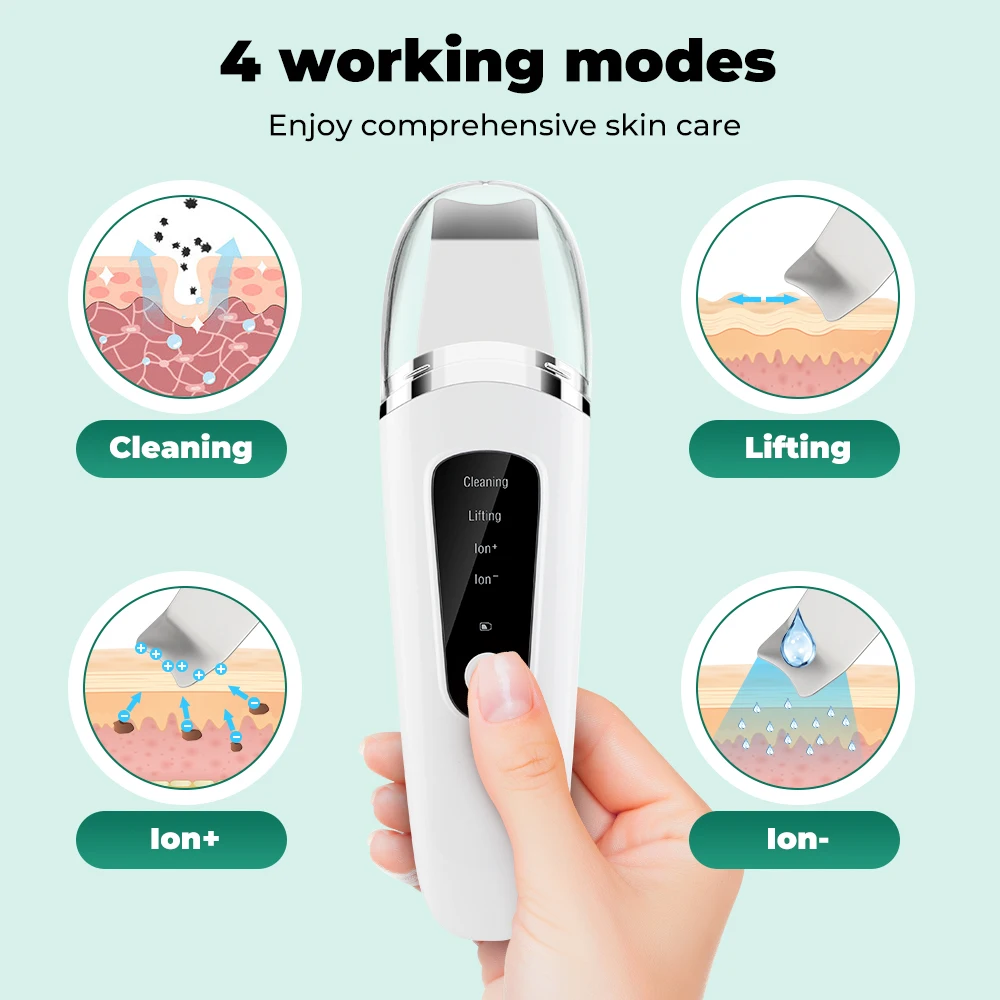 4 Modes Ultrasonic Skin Scrubber Facial Spatula Blackhead Remover Deep Face Cleaning Lift Machine Peeling Shovel Pore Cleaner