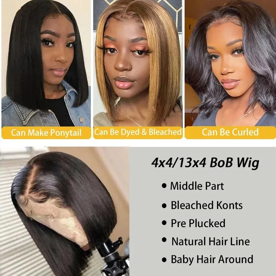 4x4 5x5 13x4 Short Bob Glueless Wigs Human Hair Lace Front Wigs For Black Women Straight Hd Lace Frontal Wigs Human Hair