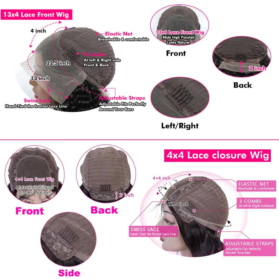 13x4 Lace Frontal Wig and 4x4 Lace Closure Wig Available