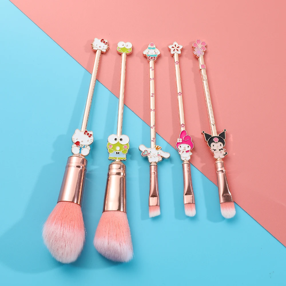 5pcs/set Sanrio Hello Kitty Makeup Brushes Kawaii Kuromi Foundation Blending Blush Concealer Eyebrow Powder Brush With Pouch