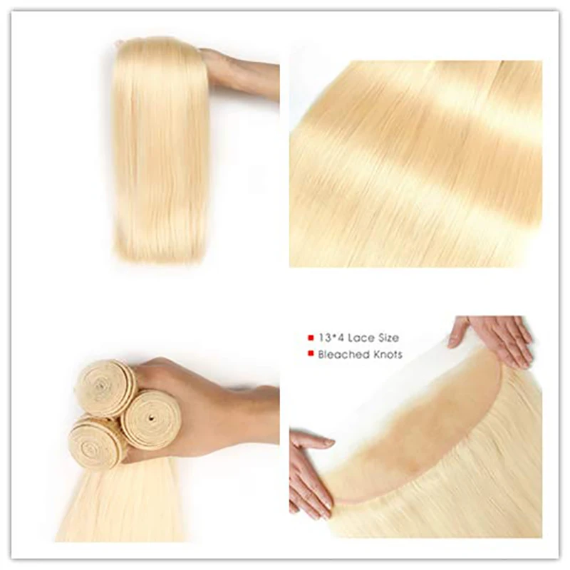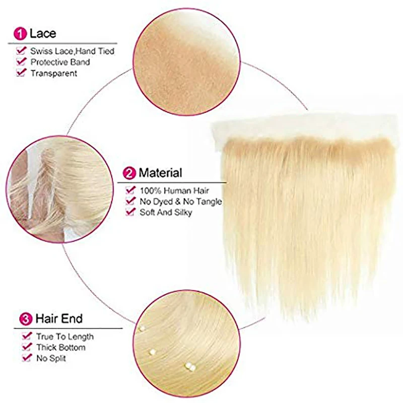 613 Honey Blonde Straight Human Hair Bundles with Frontal Closure Brazilian 100% Human Hair Weave Bundles with 13x4 Lace Frontal