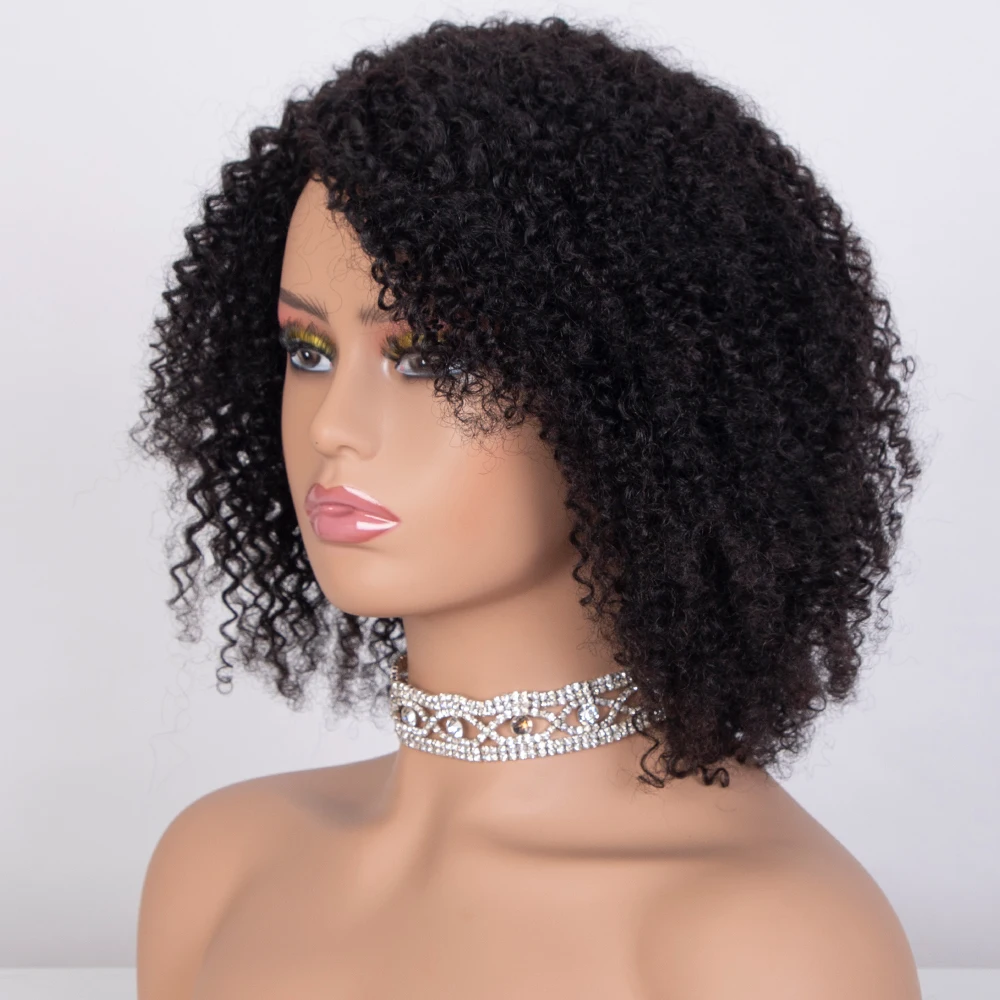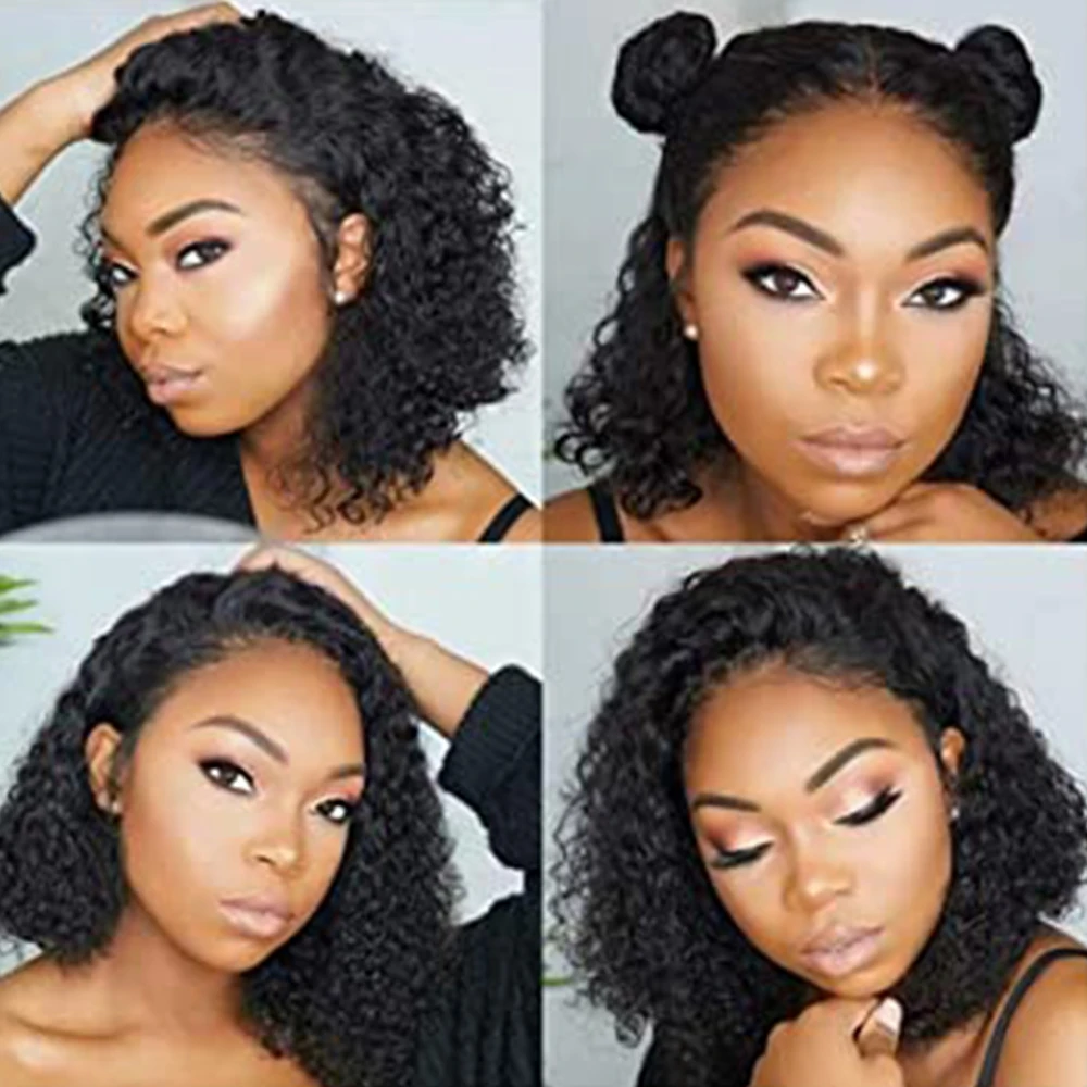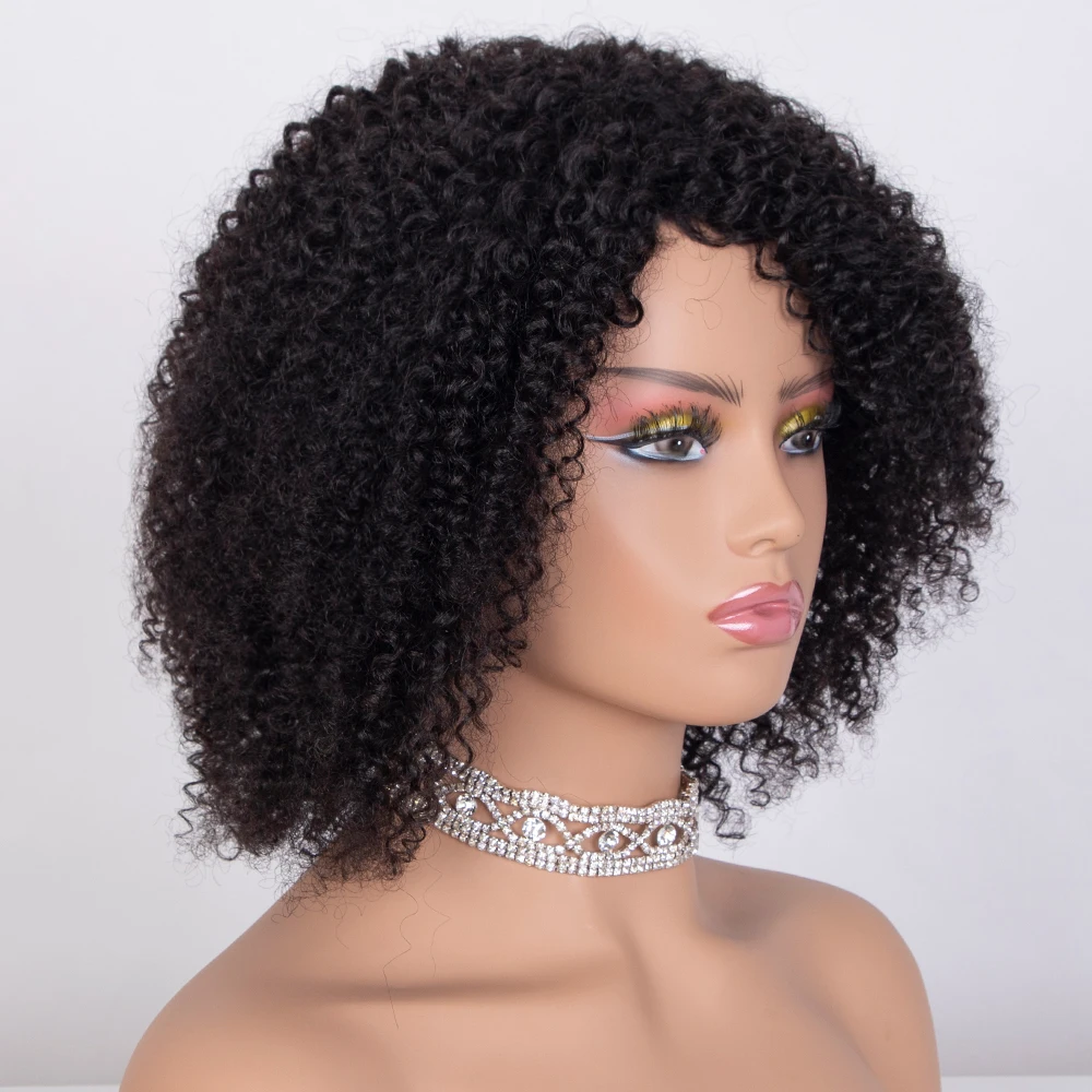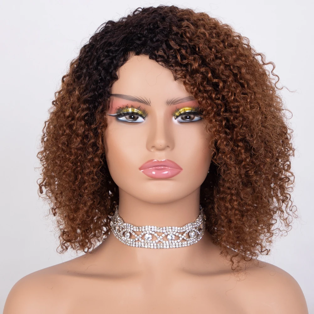 Afro Kinky Curly Bob Human Hair Wigs 3c 4a Jerry Curly Bob Wigs 180% Densit Sassy Curly Wigs With Bangs Highlight Wig For Women