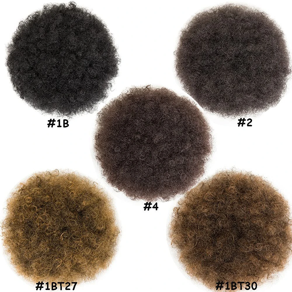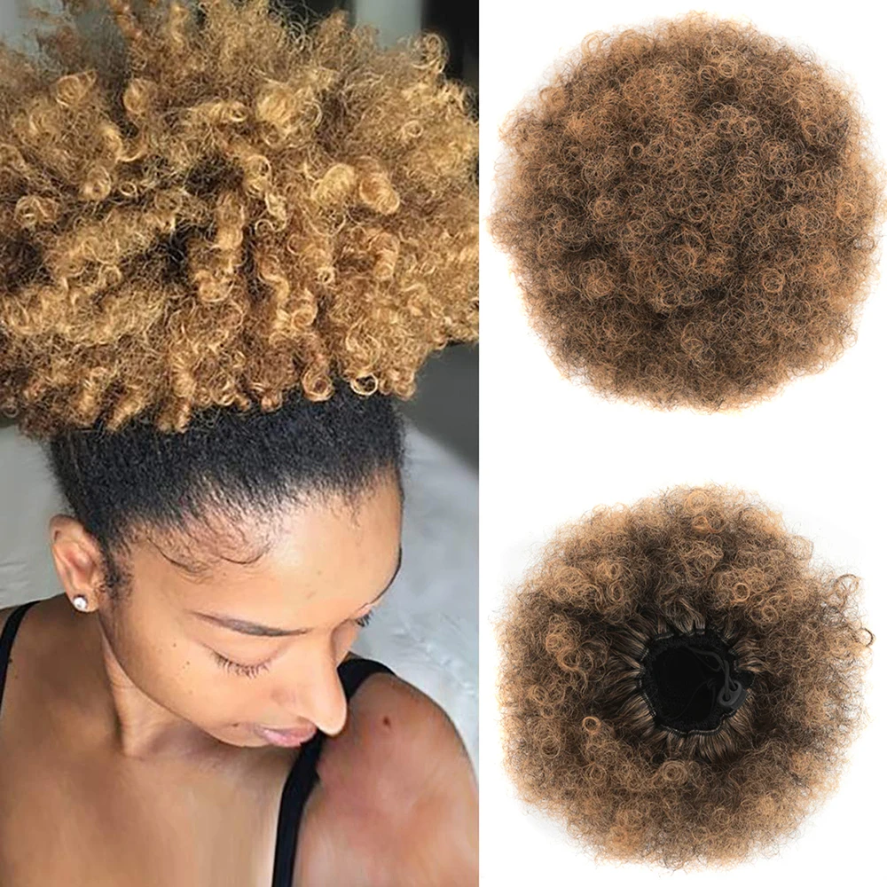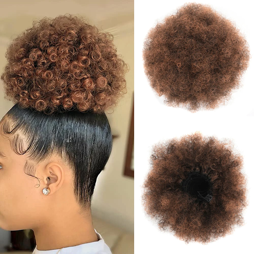 Afro Puff Drawstring Ponytail Kinky Curly Bun Hair 6 Inches Synthetic Short Extensions Clip On Bun Wig For Women Natural Black
