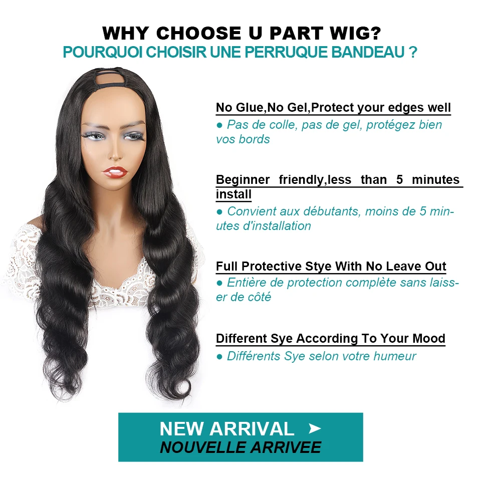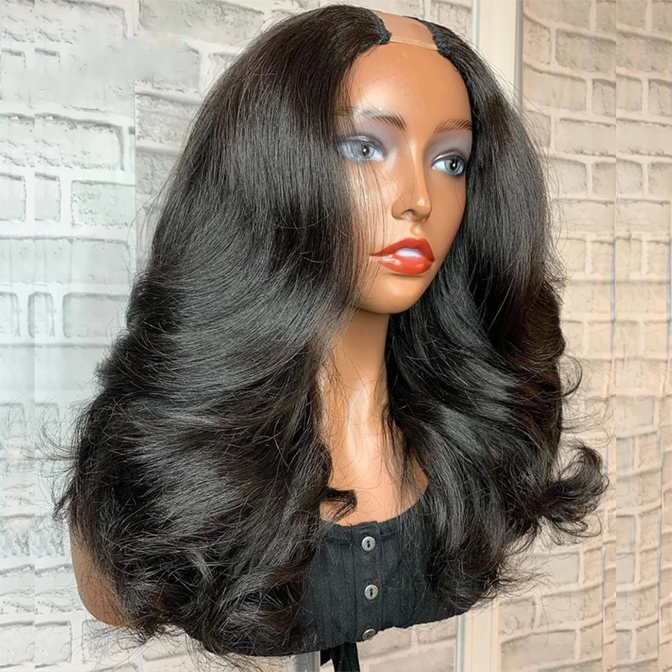 Allove U V Part Wig Human Hair 30 Inch Glueless Body Wave U Shape Wig Full Machine Made Wig Brazilian Human Hair Wigs For Women