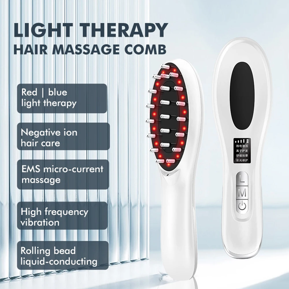 Blue Red Light Therapy Hair Growth Head Massage Comb Anti Hair Loss Negative ion Nourish EMS Vibration Scalp Massager Brush
