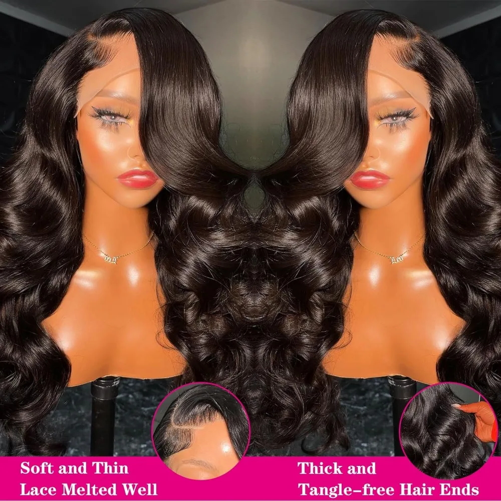 Body Wave Lace Front Wigs Human Hair Pre Plucked 180 Density 13x4 HD Transparent Frontal Glueless Wigs for Black Women