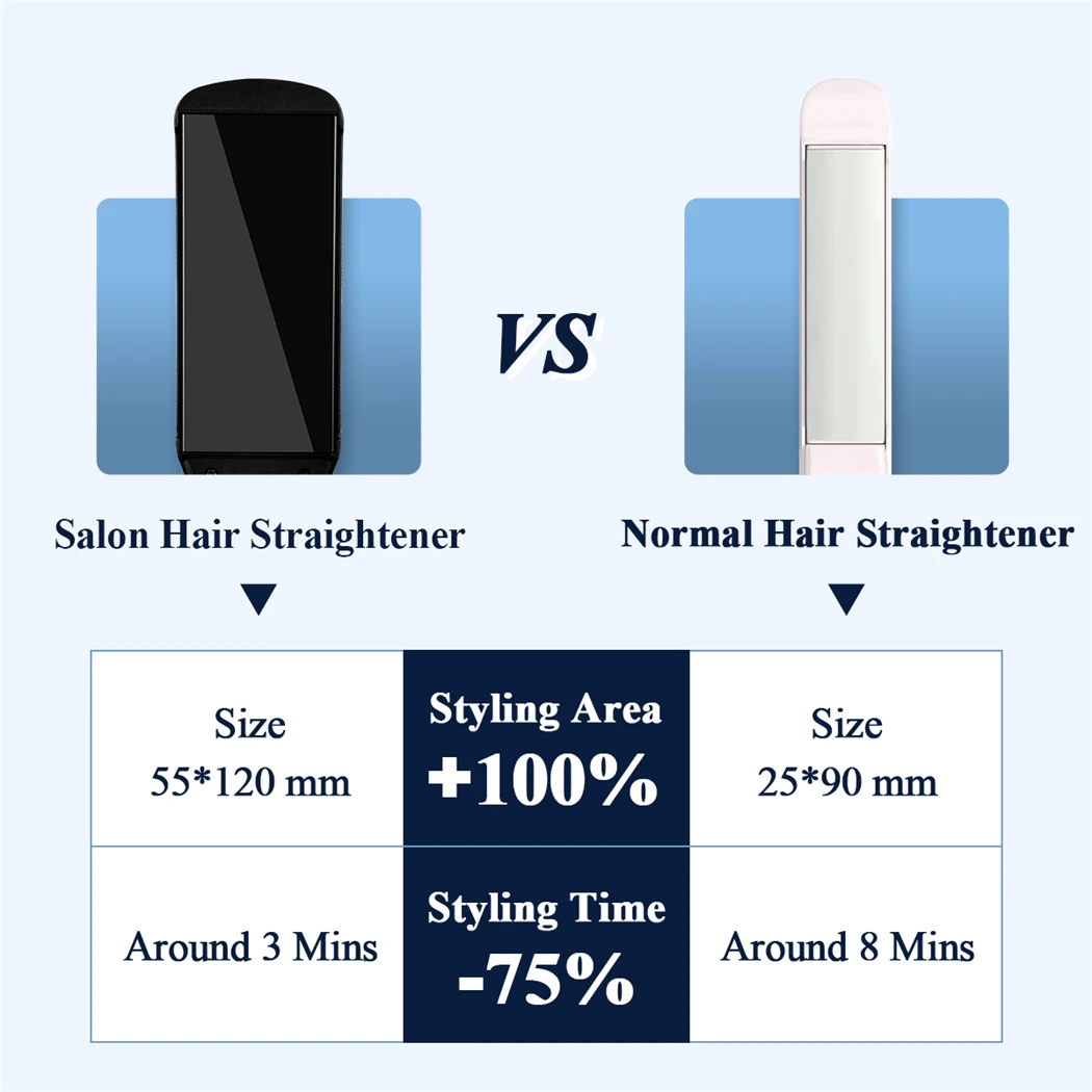 100% Bigger ceramic plates (55*120mm) for quicker styling and less damage.