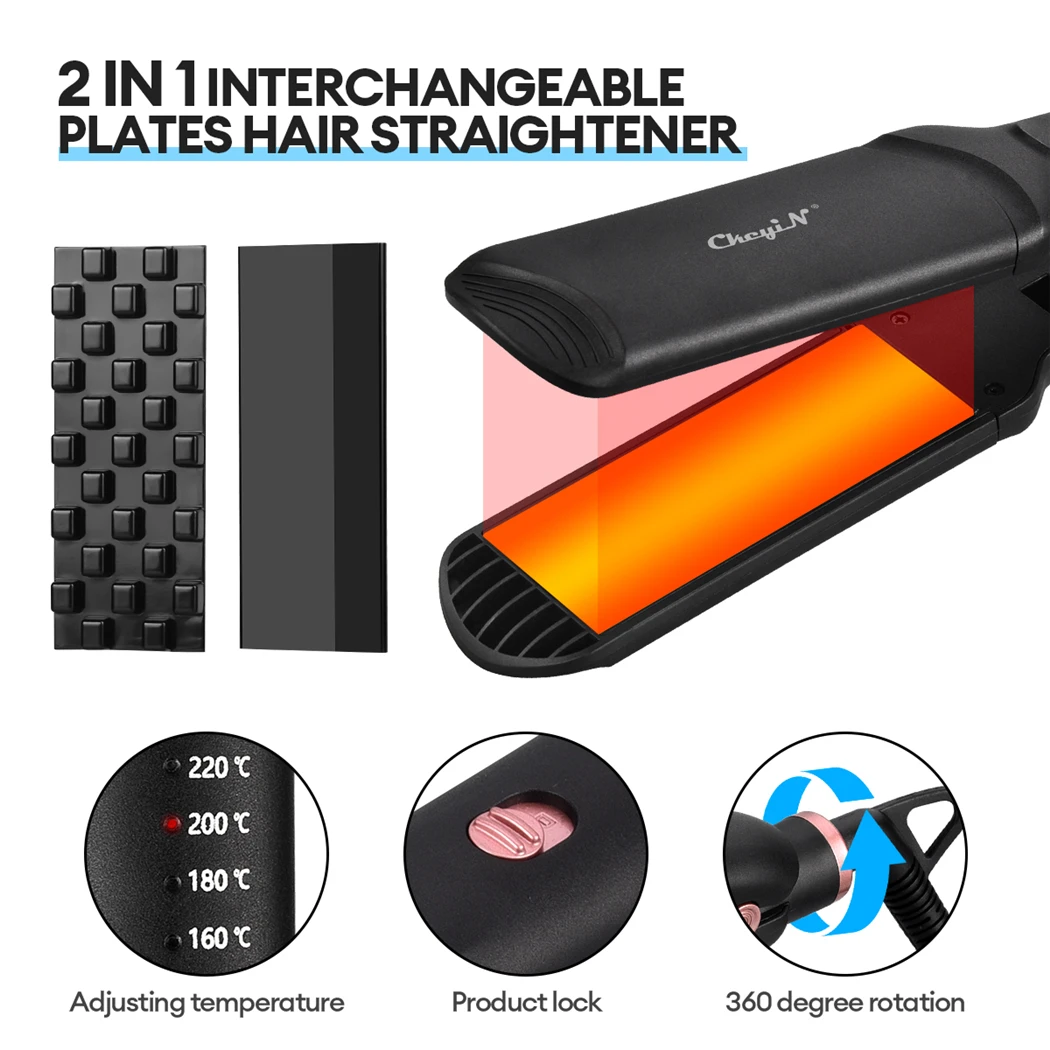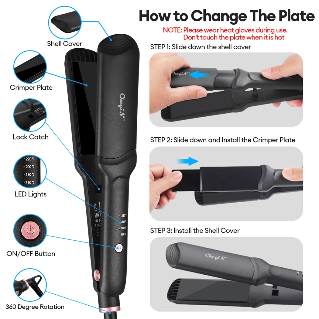 CkeyiN Professional Hair Straightener Hair Straighten Flat Iron Corn Hair Curler Ceramic Crimping Iron Crimper Styling Tools
