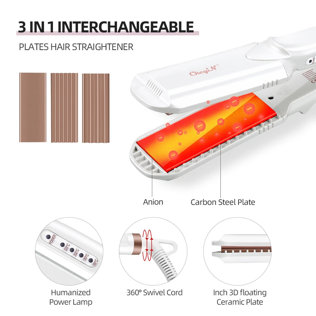 CkeyiN Professional 3 in 1 Hair Straightener Flat iron Corn Hair Curler Tourmaline Ceramic Crimping Iron Crimper Styling Tool