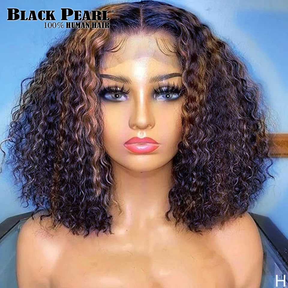 Curly Short Bob Lace Wigs Blonde Pixie Peruvian Human Hair Lace Bob Wig For Black Women Density 180% Water Wave Remy Virgin Hair