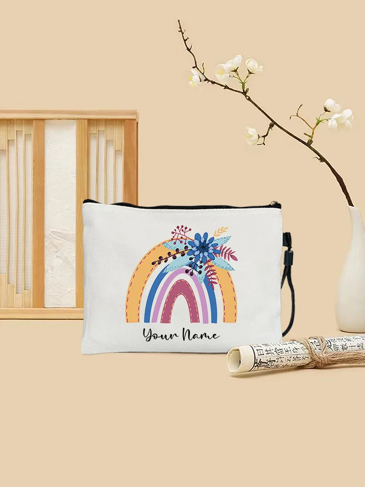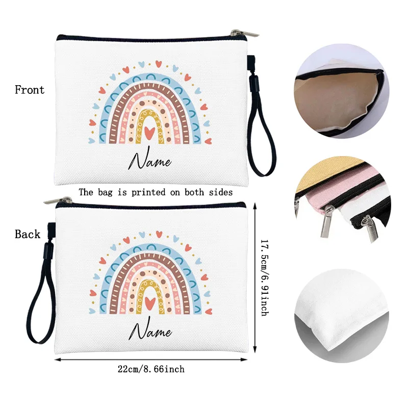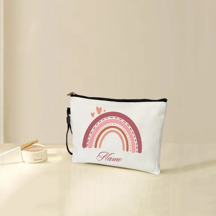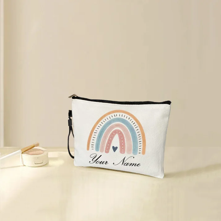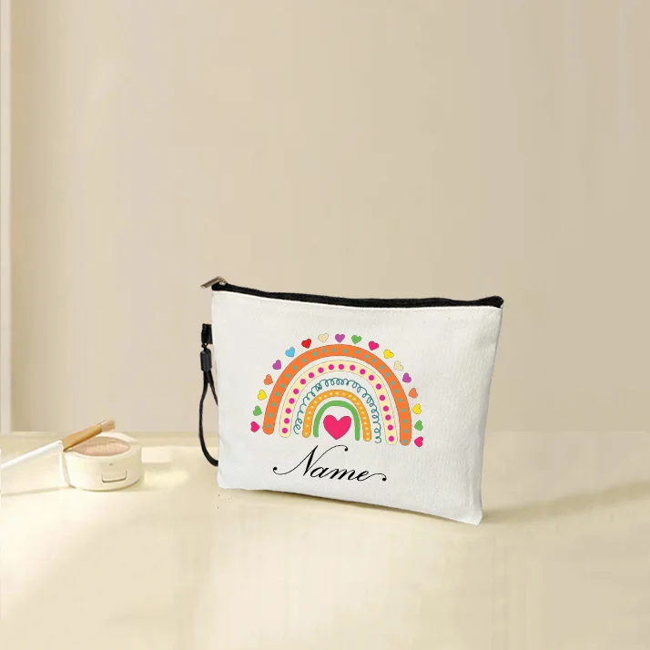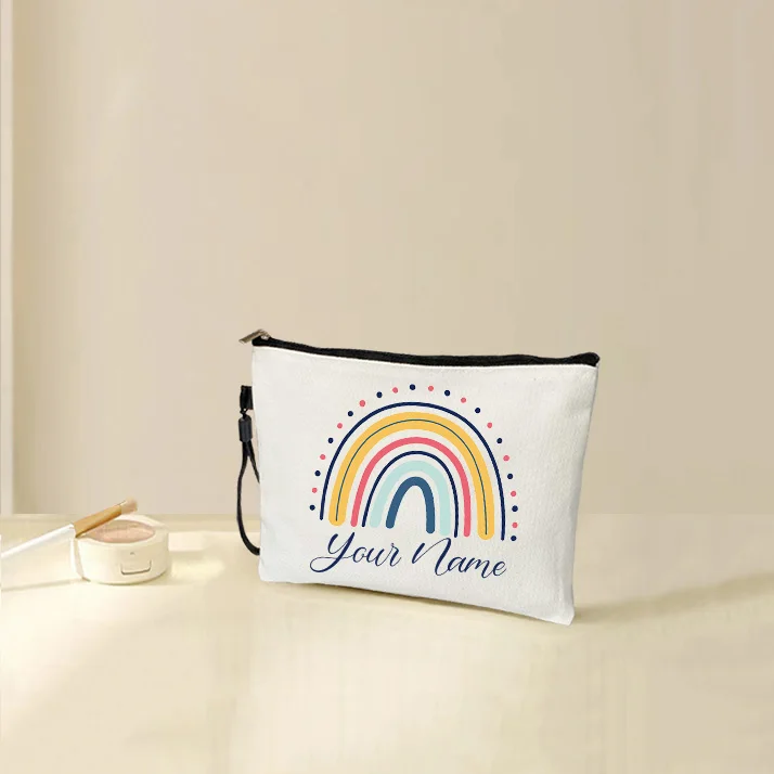 Custom Personalized Name Text Rainbow Makeup Bags Mistress Teacher's Gift Cute School Supplies Pencil Pouch Travel Toiletry Kits