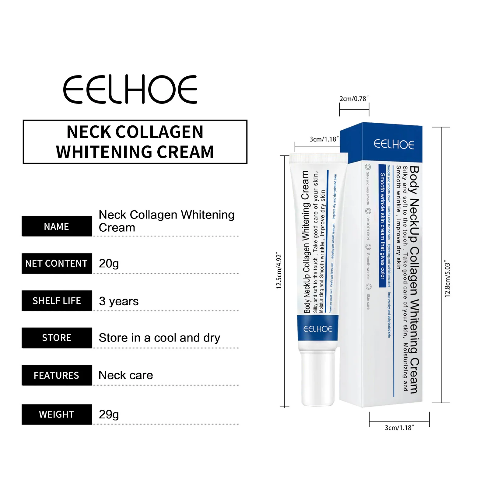 EELHOE Firming Neck Cream Skin Care Anti Wrinkle Tightening Anti Aging Nouish Neck Lightening Cream Whitening Skin Rejuvenation 20g