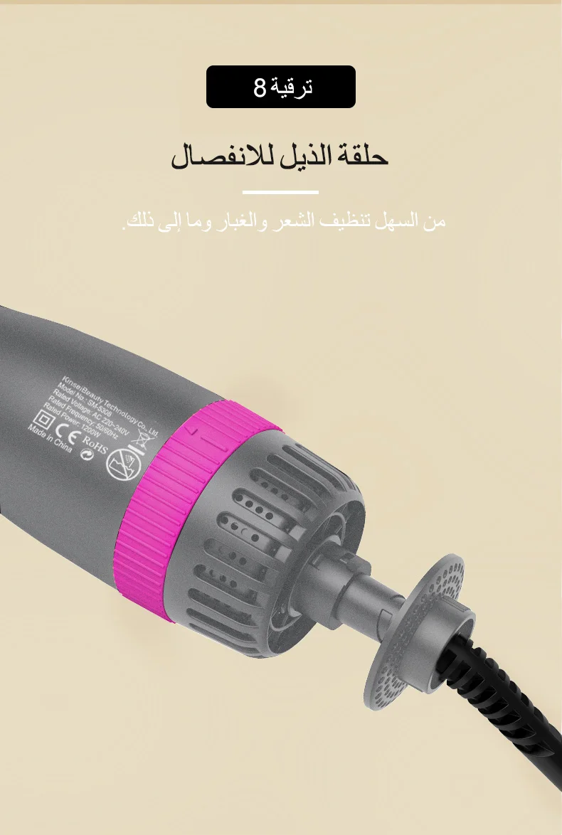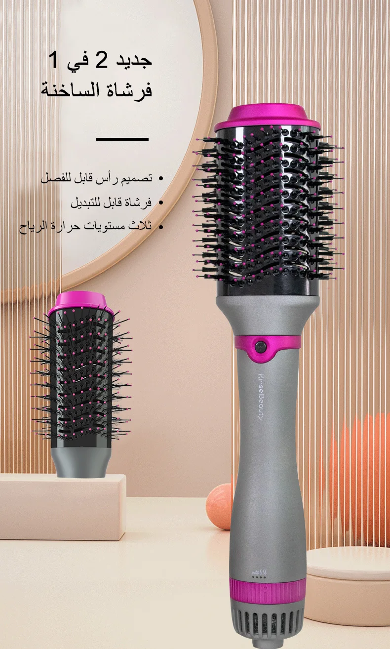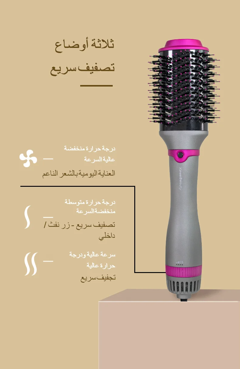 360° Rotating Power Cable、Top Insulation Prevents Burns、Nylon Long Comb Short Bristles、Wind-temp Adjust Cicle