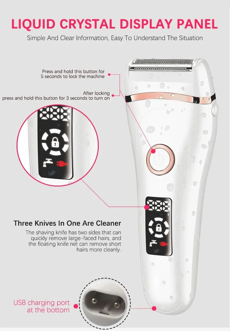 Electric Razor Painless Lady Shaver For Women Razor Shaver Hair Removal Trimmer For Legs Underarm Waterproof LCD USB Charging