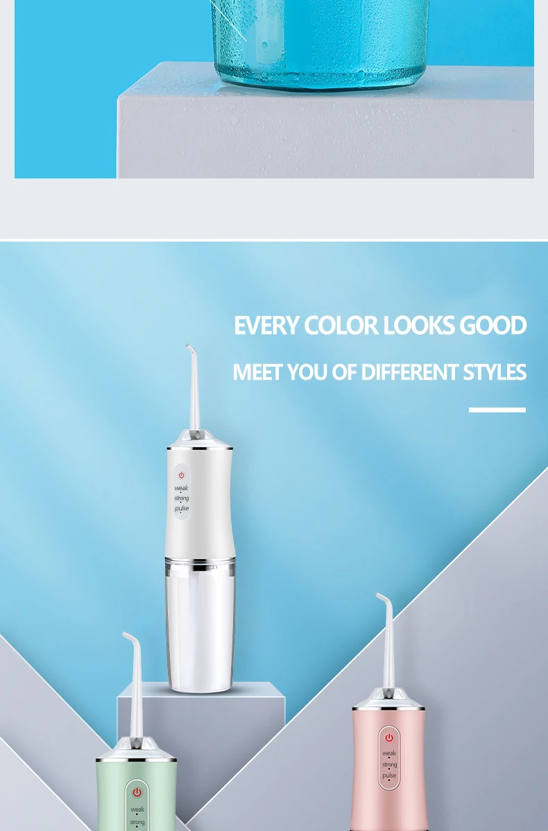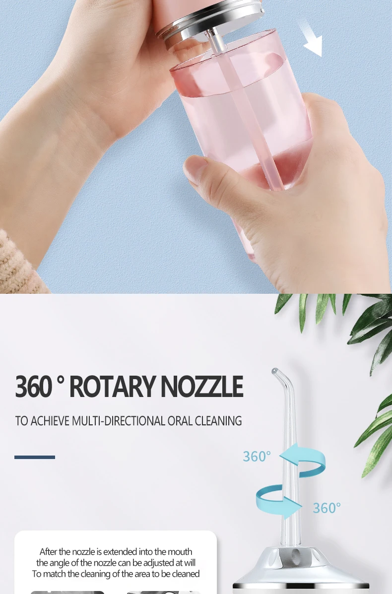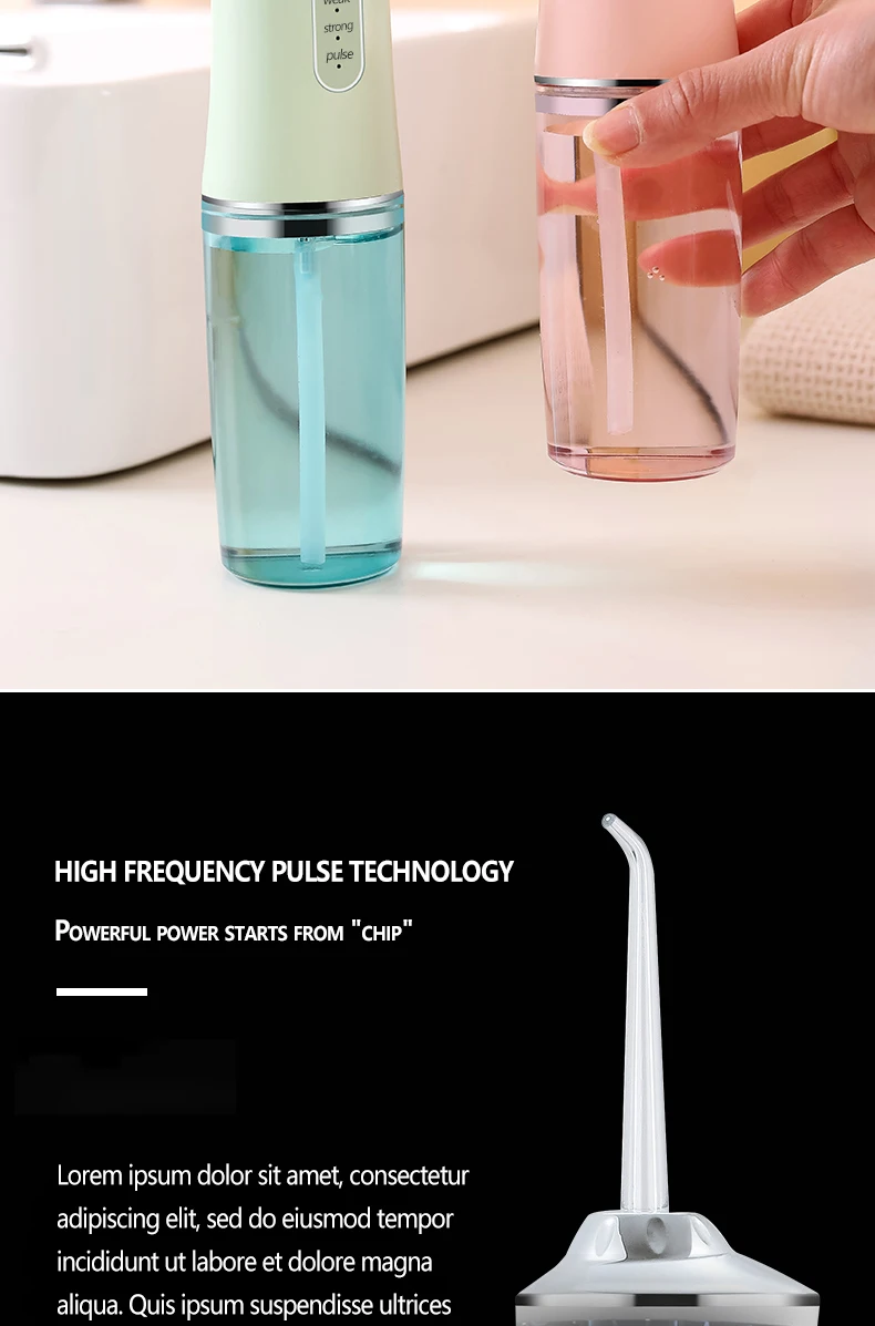 Electric toothbrush for efficient oral care, USB rechargeable water jet drill toothpick 4 nozzles 3 modes IPX7 high-frequency