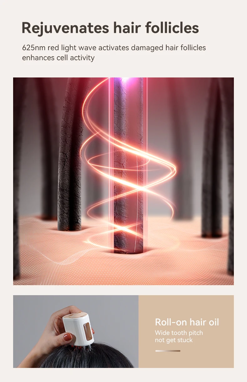 2.625nm red light enhances metabolism, activates cells, promotes regeneration of hair follicles, and protects scalp health.