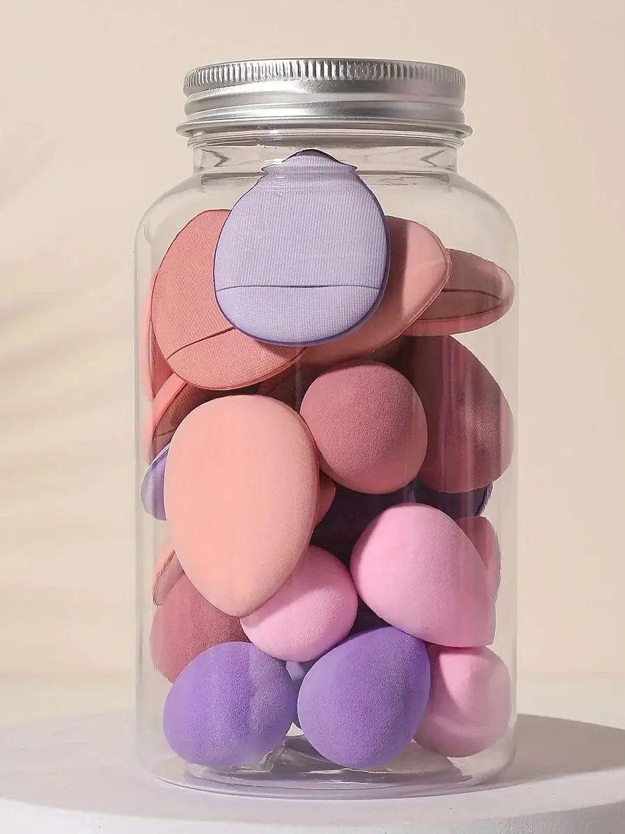 Face Makeup Tool Set With Storage Case, 15Pcs Mini Makeup Sponge (3 Colors) & 15 Pieces Thumb Powder Puffs (3 Colors), Soft Make