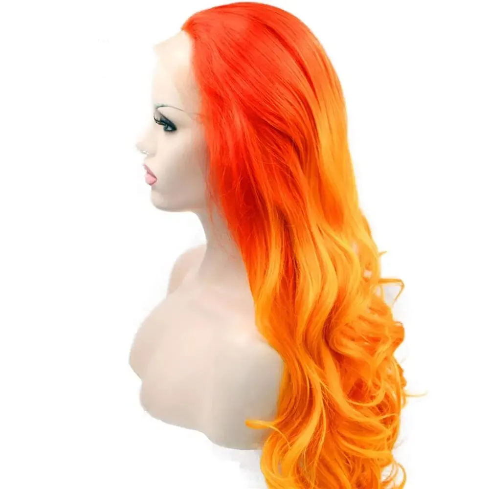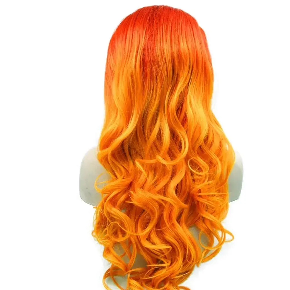 Fiery Red Orange 2 Tone Ombre Body Wave Synthetic Lace Front Wigs Premium Hot Orange Cosplay Heat Resistant Fiber Hair Wigs