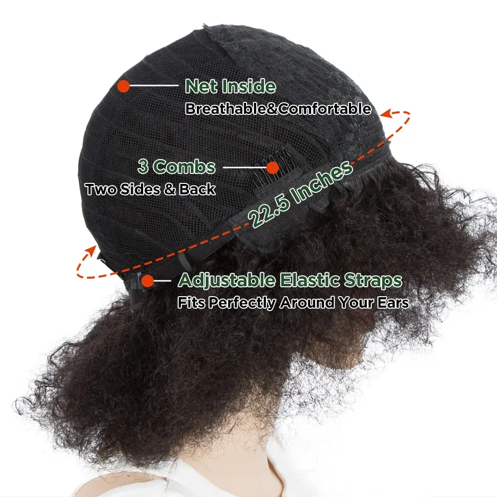 Fluffy Remy Short Afro Kinky Curly Wave Human Hair Wig With Thick Bangs Short Bob Wig Brazilian Human Hair Wigs For Black Women