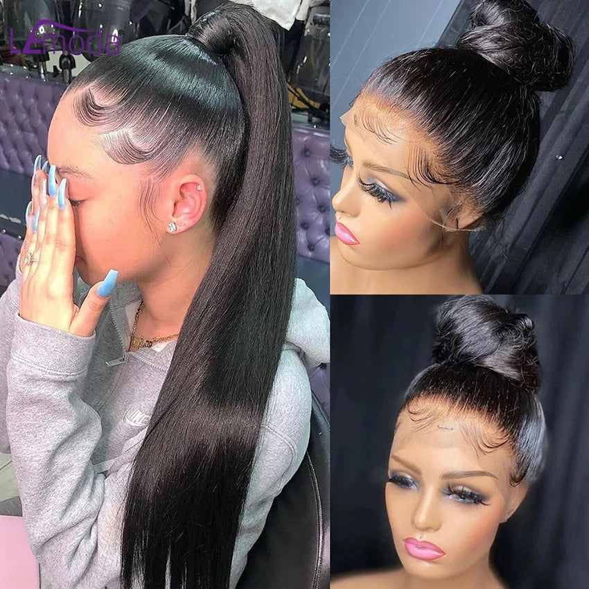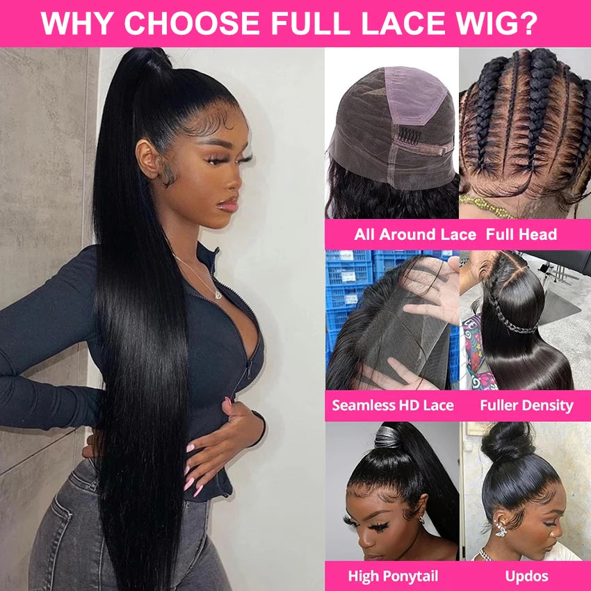 Full Lace Human Hair Wig Bone Straight HD Transparent Full Frontal 360 Lace Wigs For Black Women Brazilian Remy Hair Preplucked