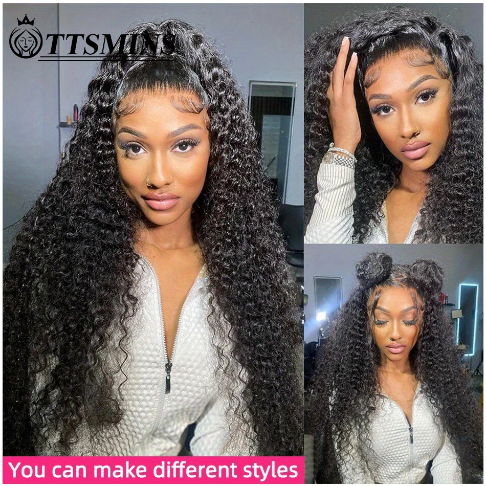 Glueless Deep Wave Frontal Wig 13X4 Deep Curly Lace Front Human Hair Wigs For Black Women 180% Pre Plucked With Baby Hair 20-34"