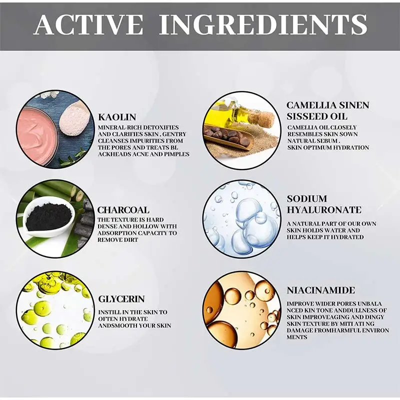 -The charcoal solid mask contains charcoal extract and high concentration of active ingredients, which can effectively remove impurities, dirt, blackheads, toxins and blemishes, leaving the skin glowing. This blackhead formula has a unique strong absorption and deep cleansing function. Long-term use can remove the dull surface cells, stubborn stains or oil spots on the face, and make the pores smaller.