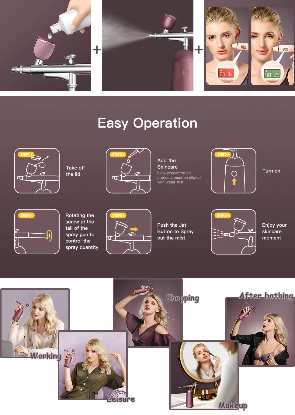 This Makeup Airbrush Set adopts high pressure water-atomizing to produced finest mist.