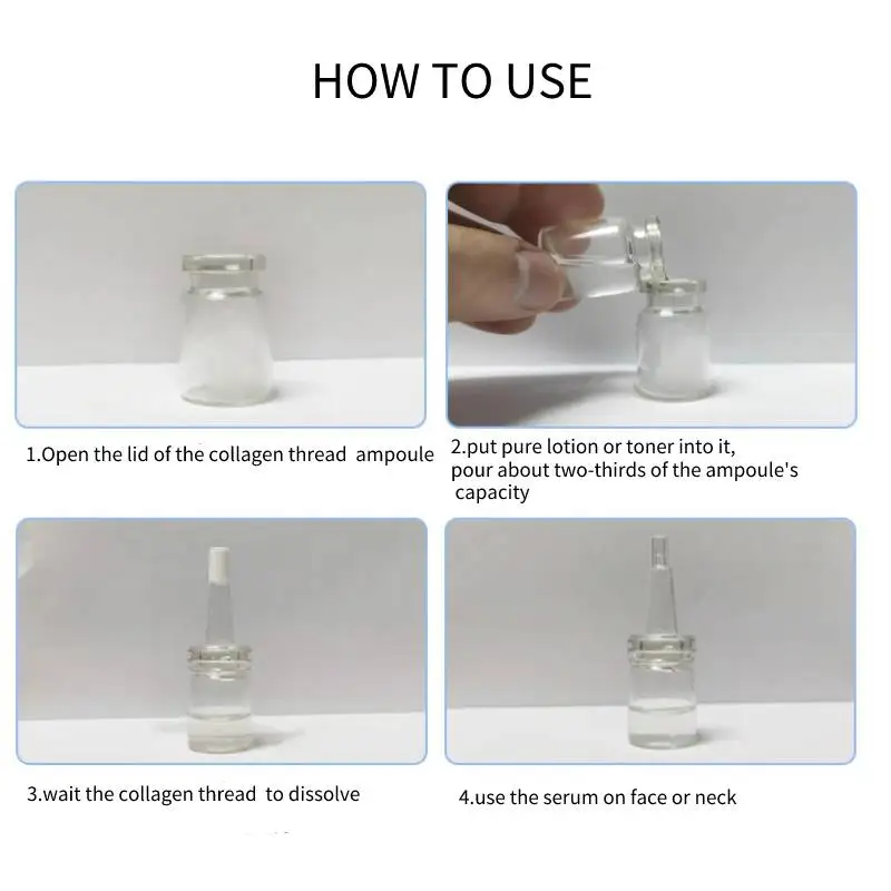 2.put pure lotion or toner into it, pour about two-thirds of the ampoule's capacity, (if you need order serum from our store,you can contact the servicer)