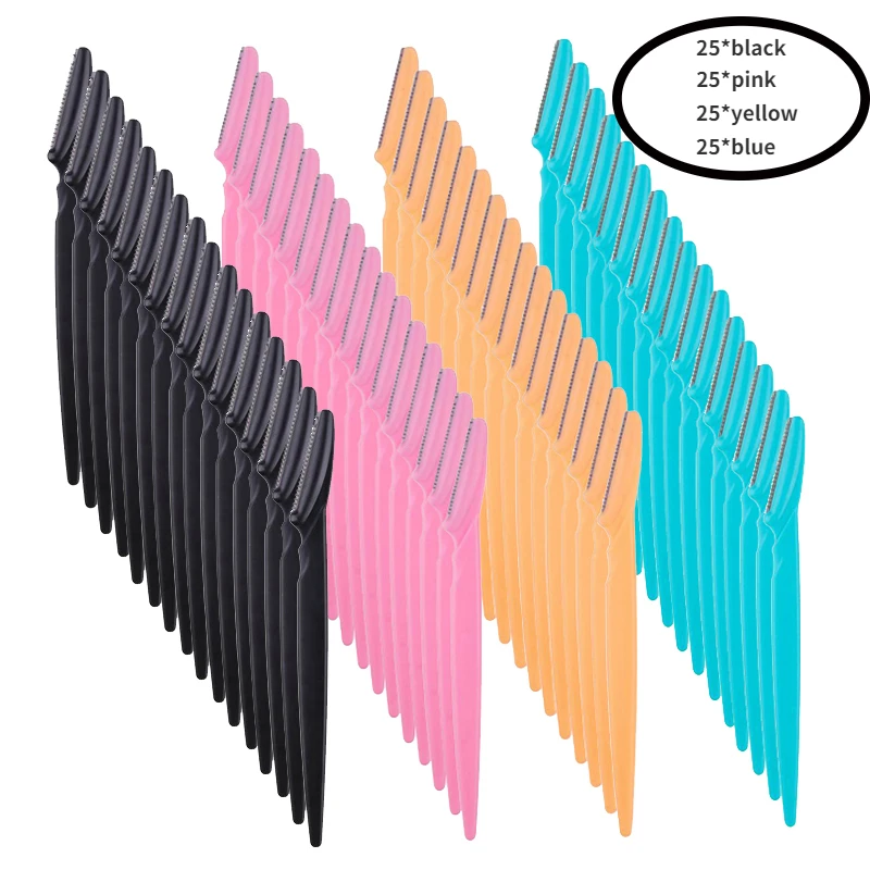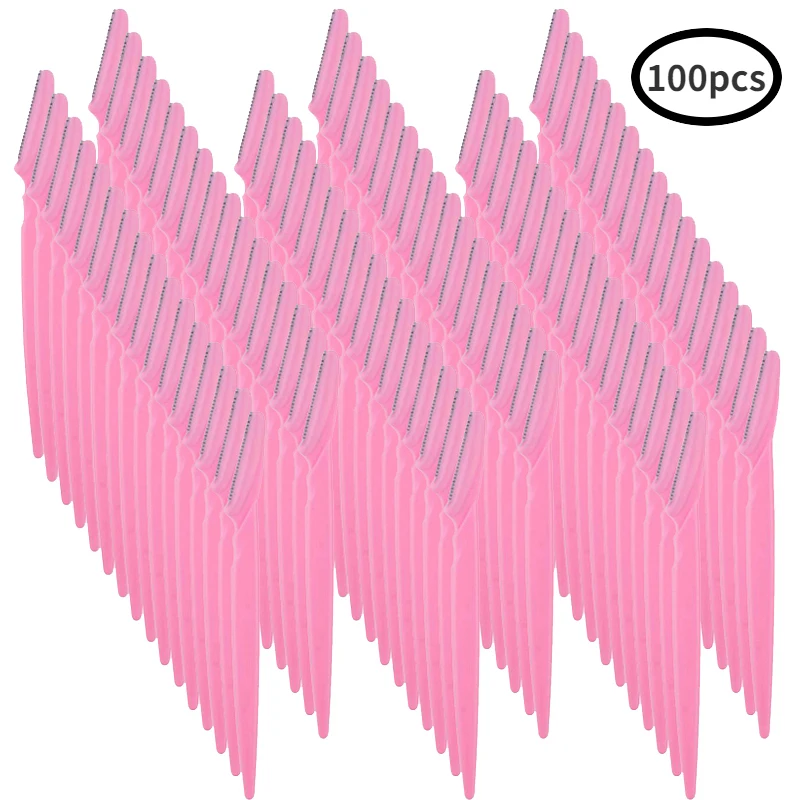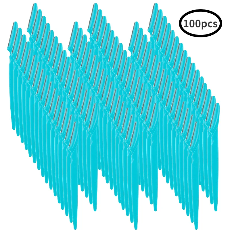 Karsyngirl 100Pcs Eyebrow Trimmer Blade Shaver Portable Face Razor Eye Brow Epilation Hair Removal Cutter Safety Razor for Woman