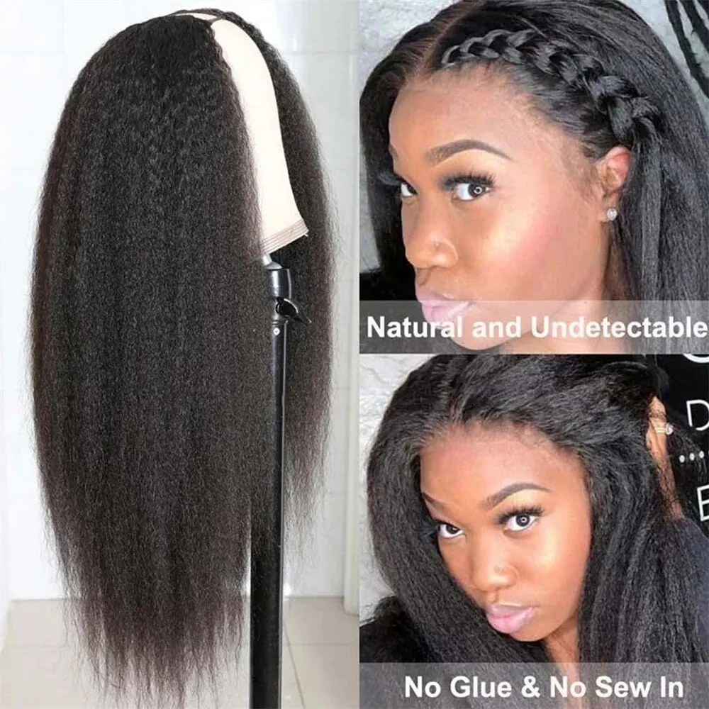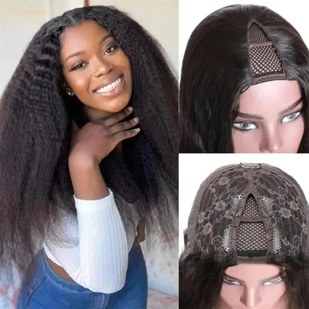 Kinky Straight U V Part Wig Human Hair No Leave Out Glueless 180% Density Yaki Straight U Part Human Hair Wig For Women