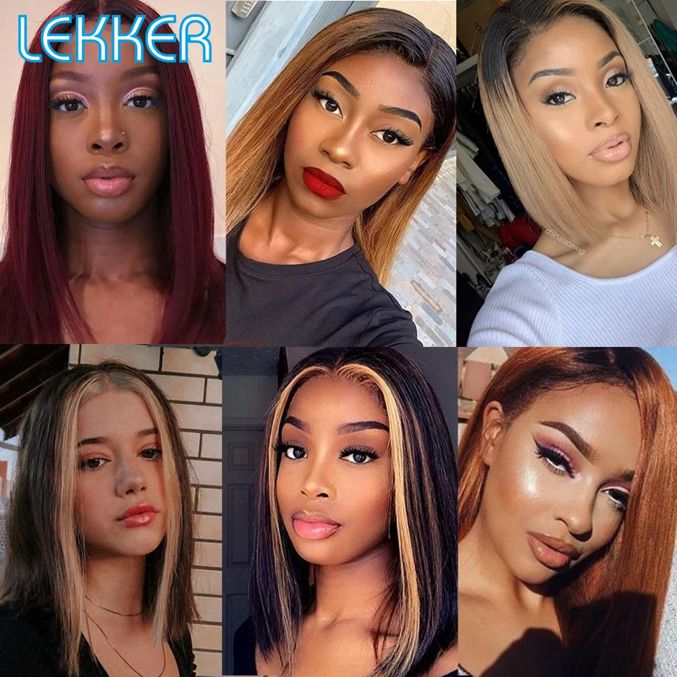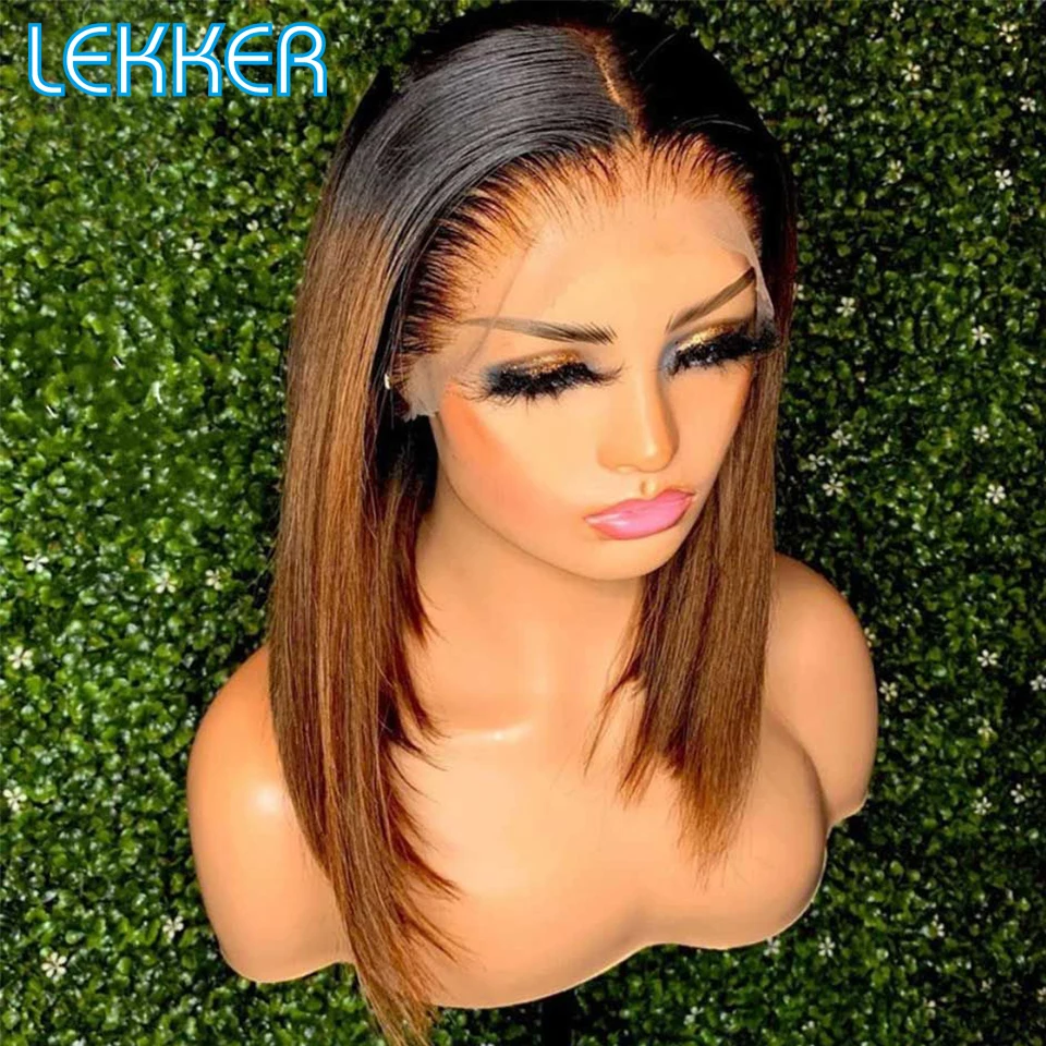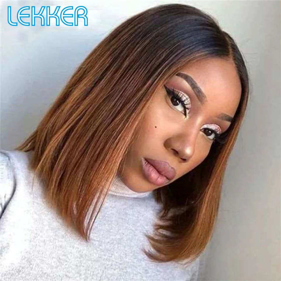 Lekker Ombre Brown Bone Straight Bob T Part Lace Front Human Hair Wig For Women Colored Brazilian Remy Hair Glueless 99j Red Wig