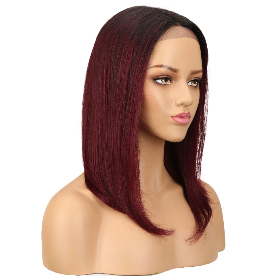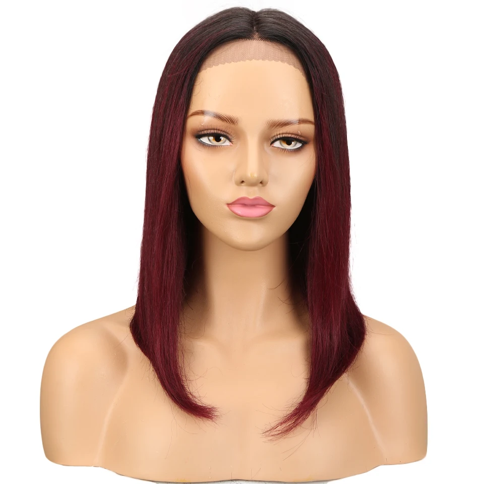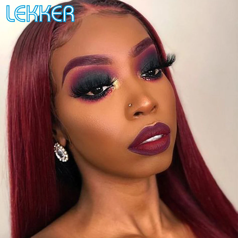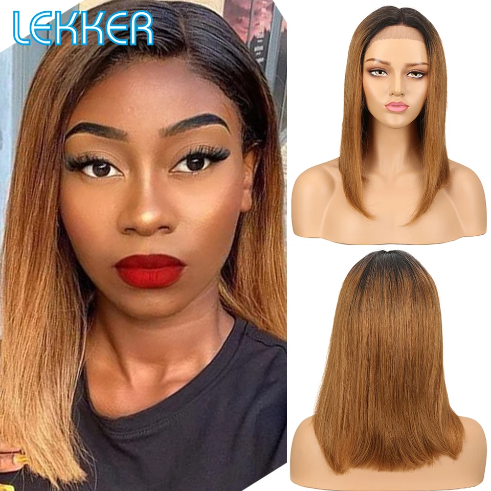 Lekker Ombre Brown Bone Straight Bob T Part Lace Front Human Hair Wig For Women Colored Brazilian Remy Hair Glueless 99j Red Wig