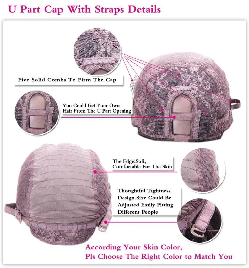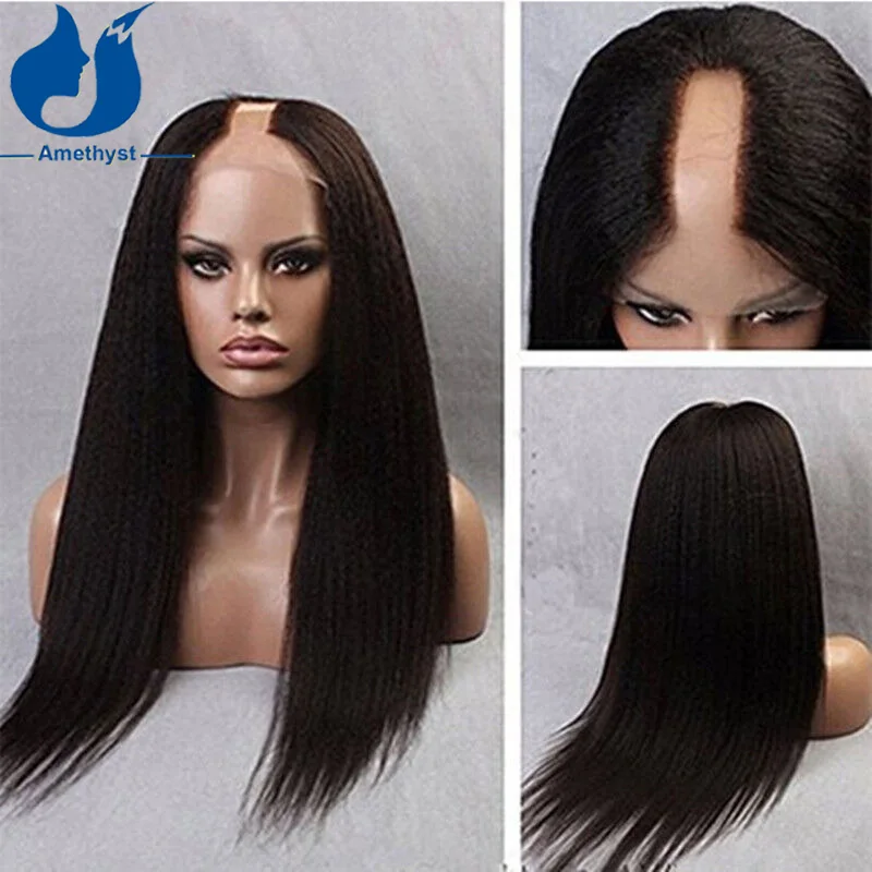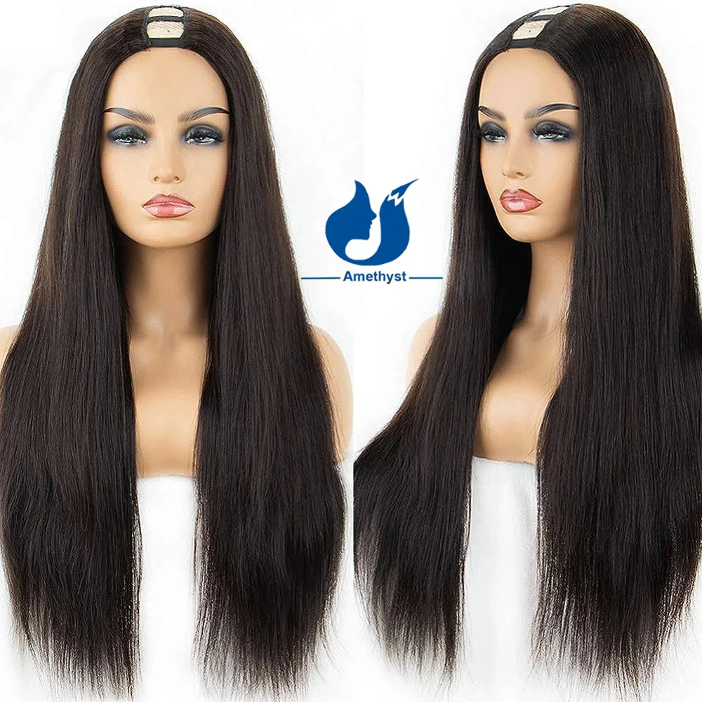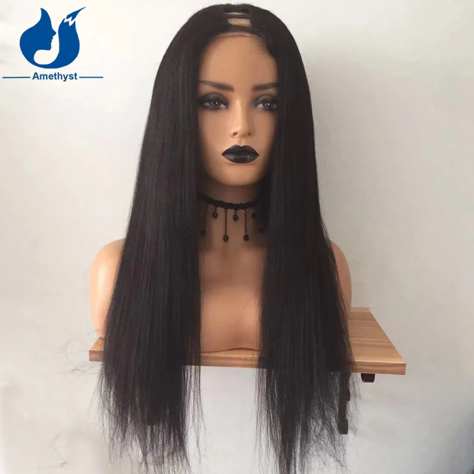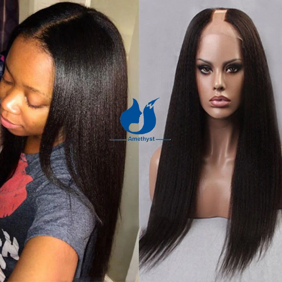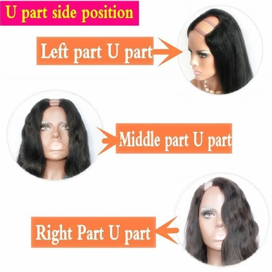 Light Yaki Straight 1X3 U Part Human Hair Wigs Brazilian Remy U Shaped No Leave Out Glueless U-Part Wigs For Black Women