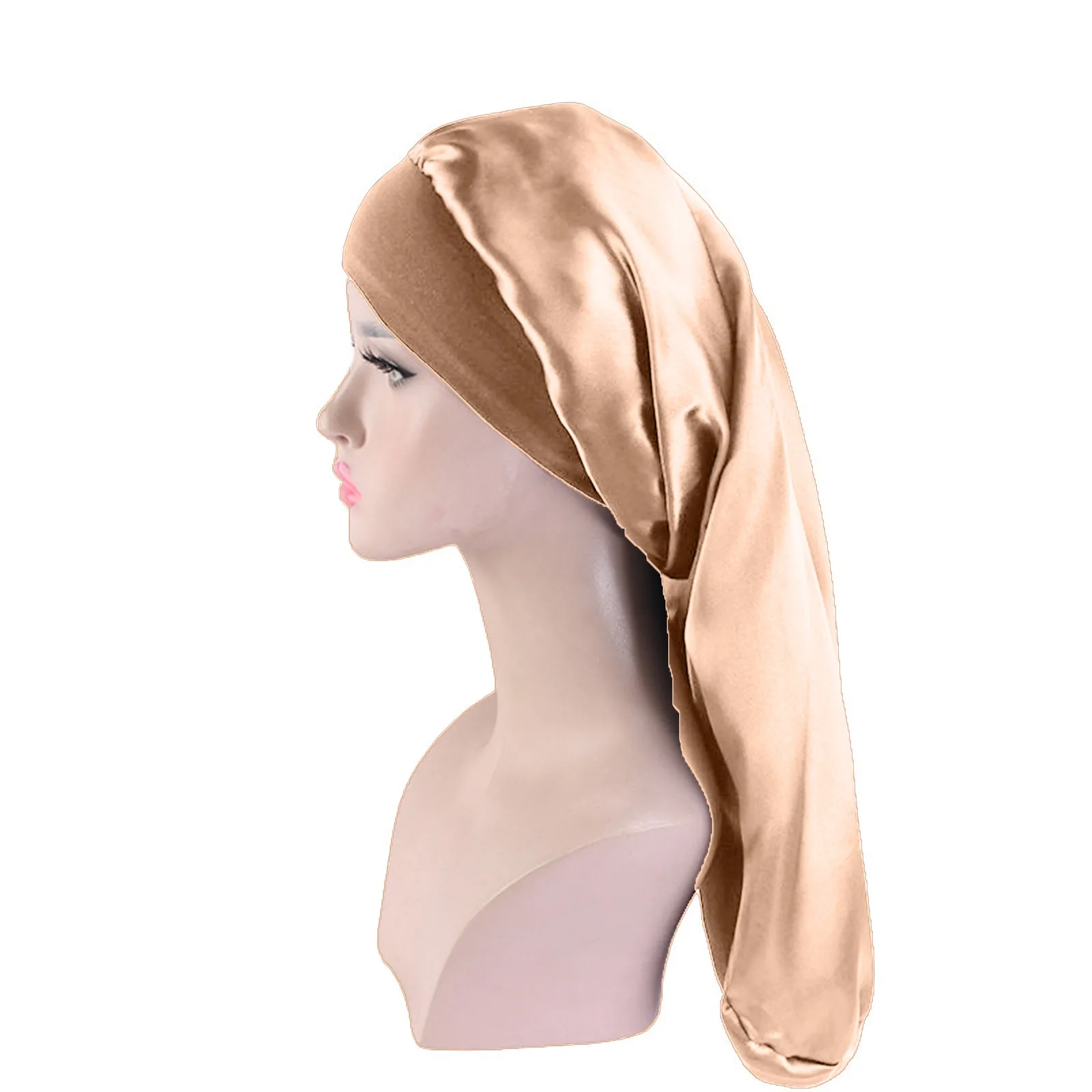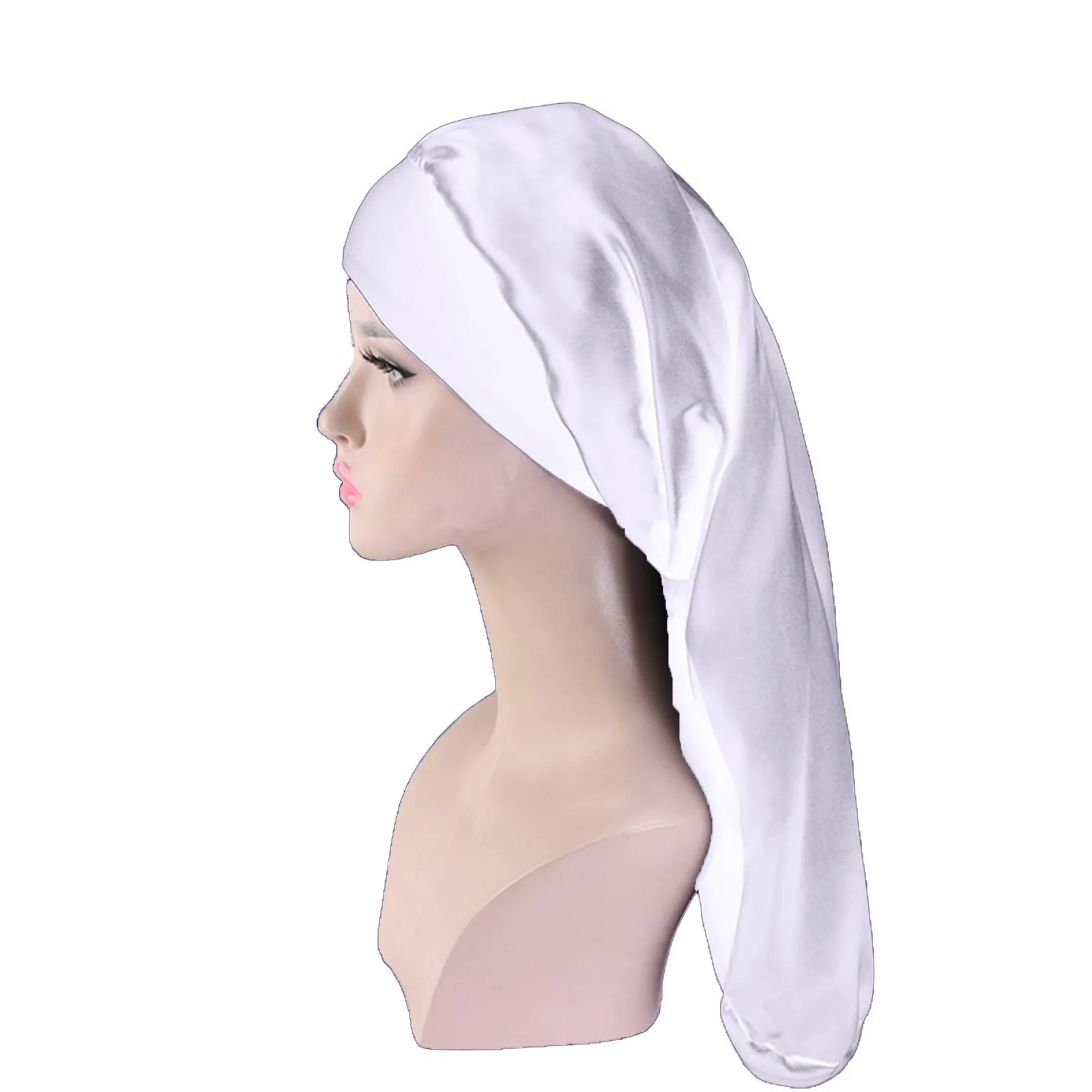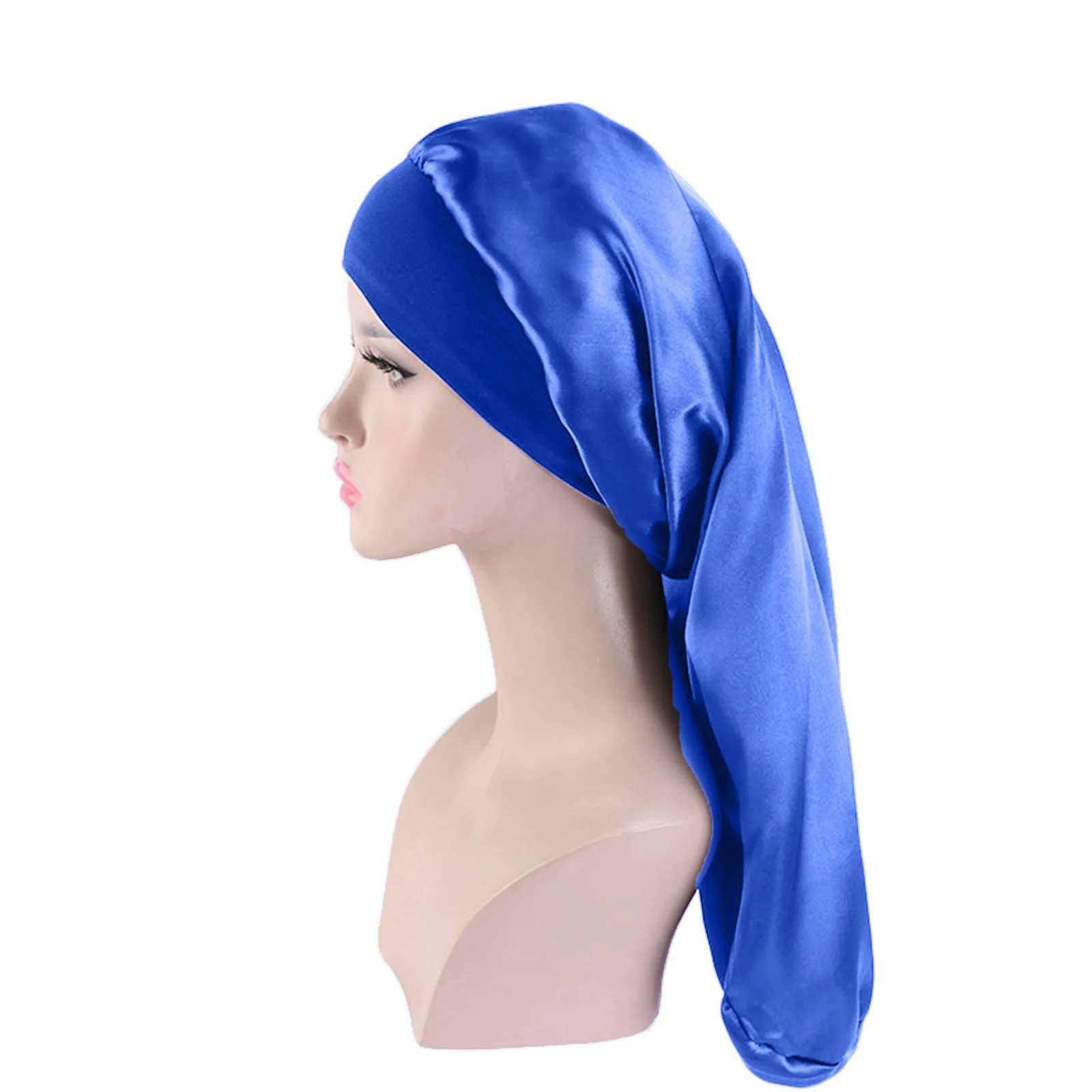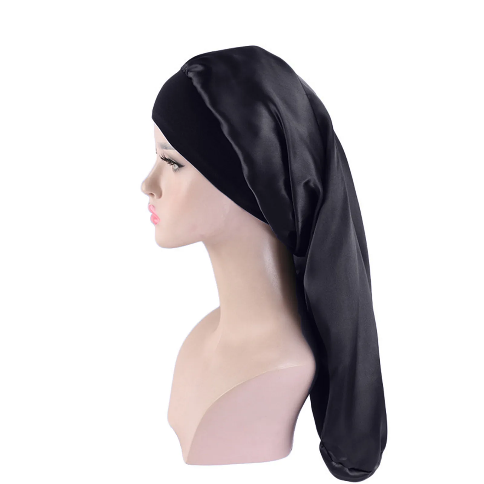 Long Satin Bonnet Sleep Cap Silk Sleeping Cap With Wide Elastic Band Loose Night Hat For Women Braids Curly Hair Natural Hair