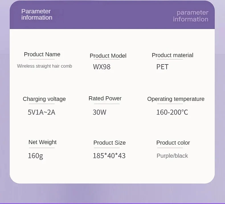5. 3-level adjustment, intelligent temperature control, 160℃, suitable for fine and soft hair; 180℃, suitable for ordinary hair; 200℃, suitable for thick and hard hair