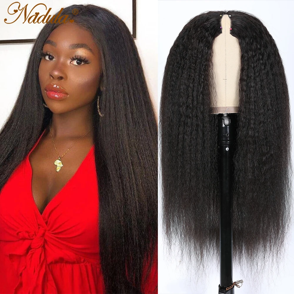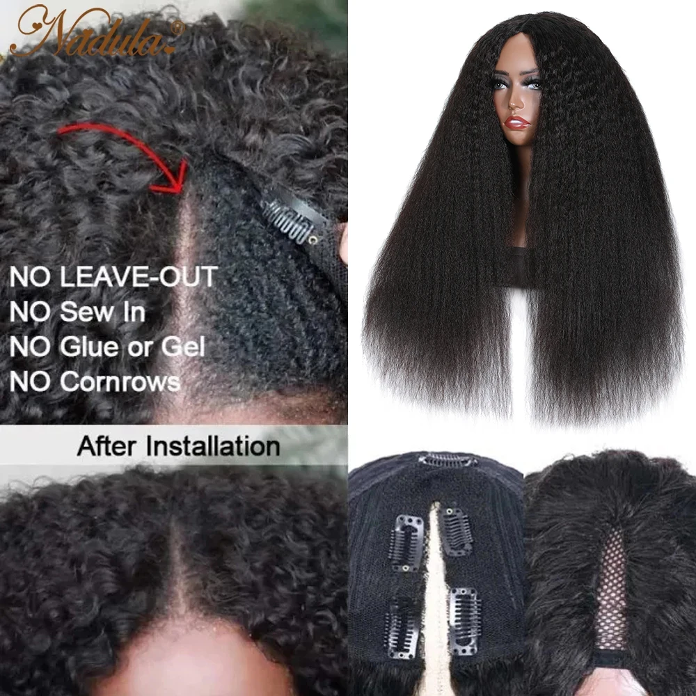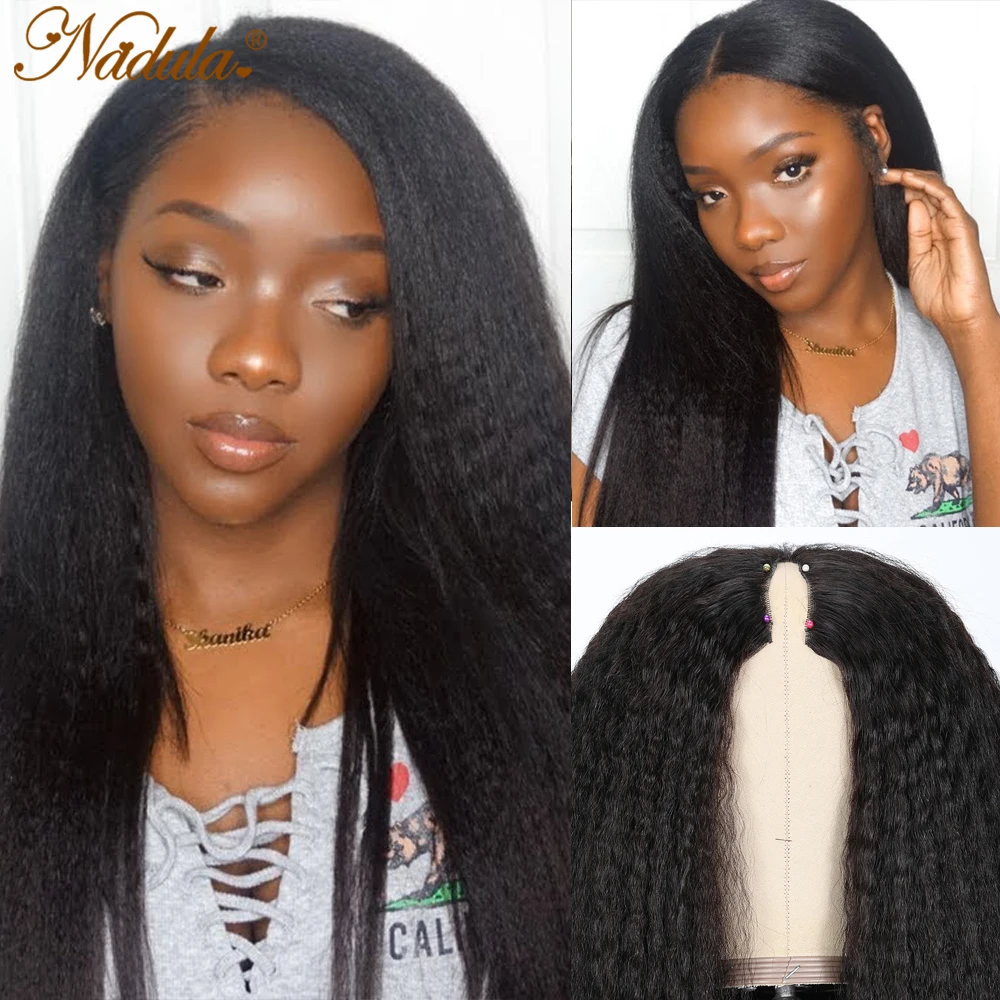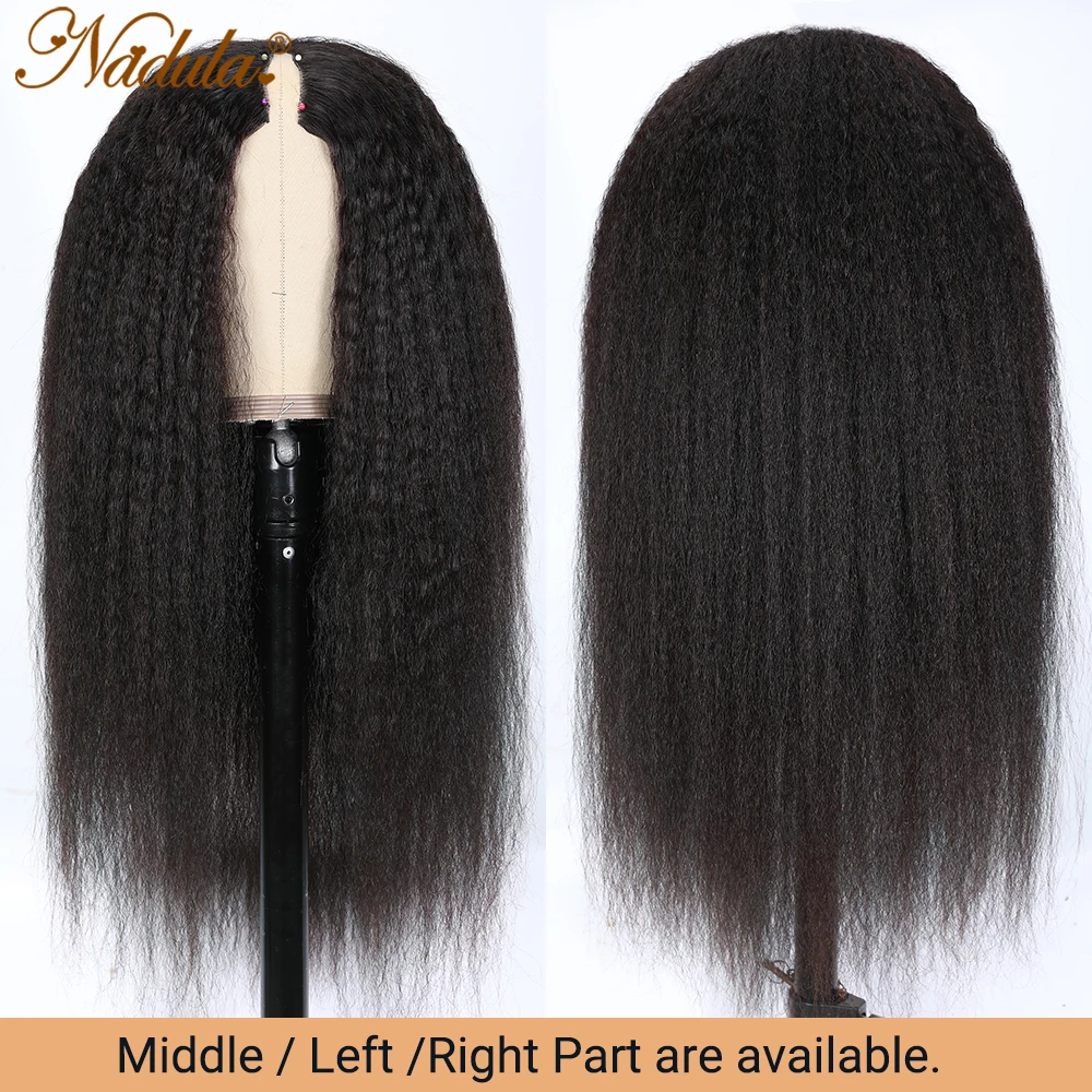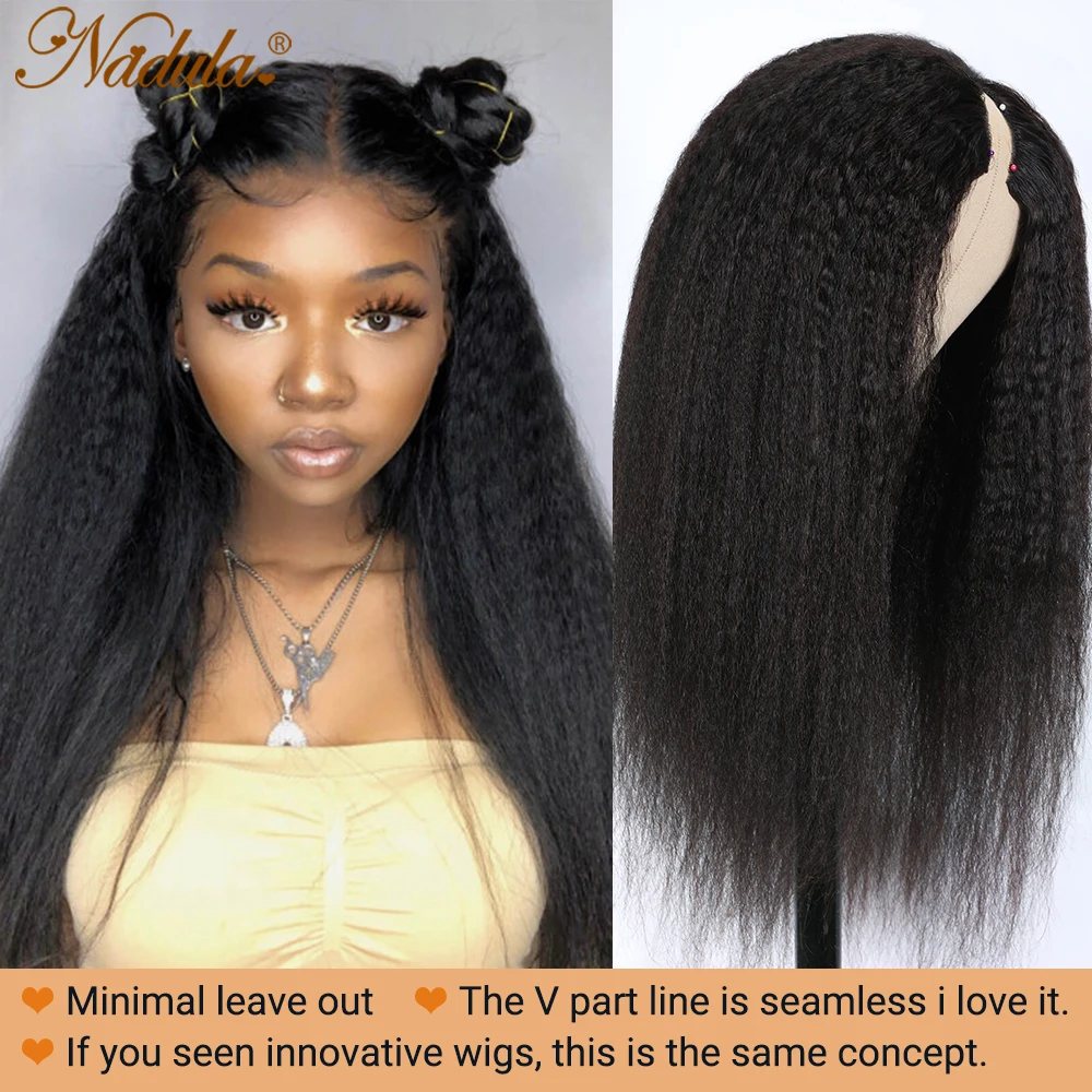 Nadula Hair Kinky Straight V Part Wig Human Hair Brazilian Hair Wigs V Shape Glueless Human Hair Wigs No Leave Out