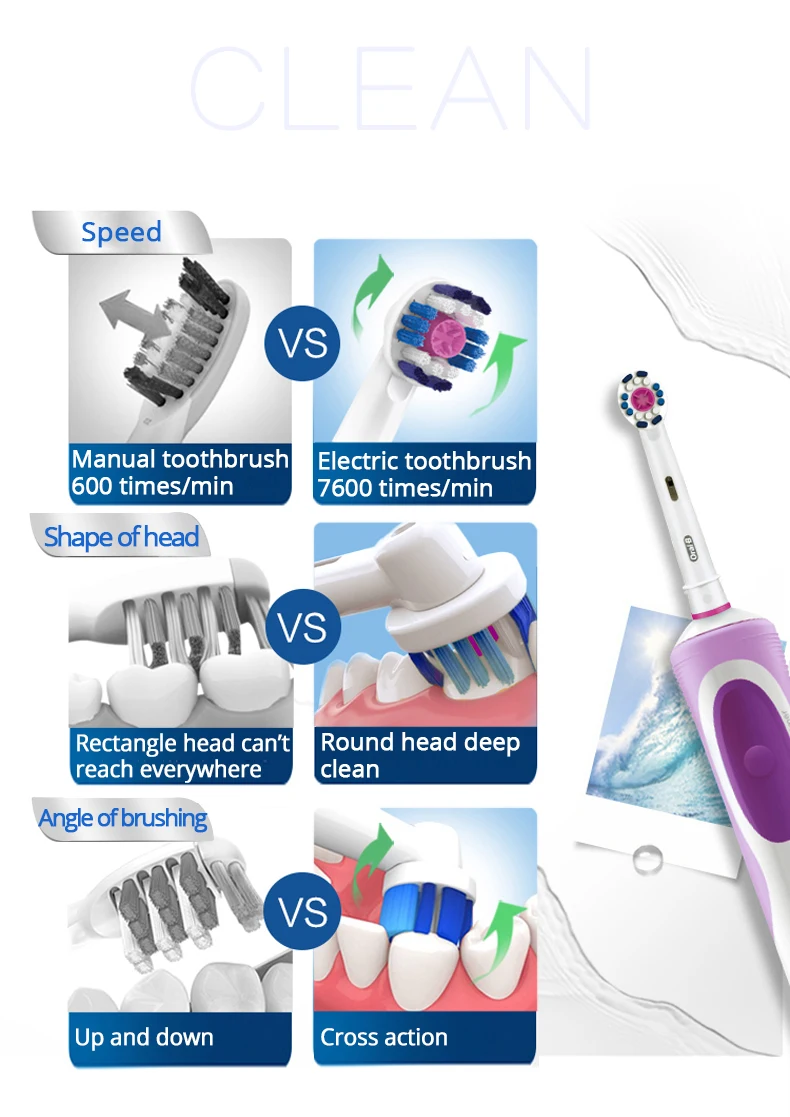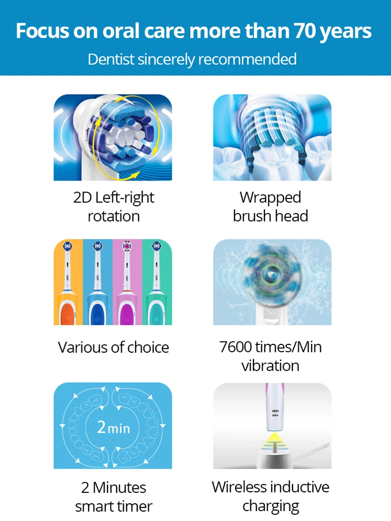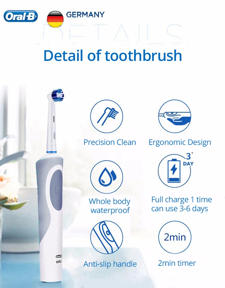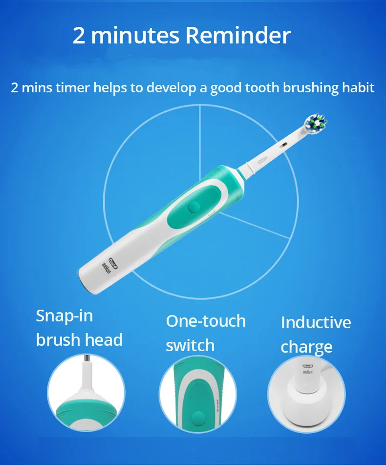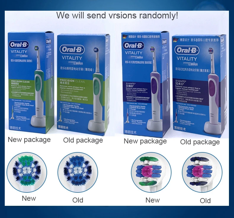 Oral B D12 Vitality Electric Toothbrush Rechargeable Sonic Tooth Brush Soft Bristle Inductive Charging Remove Plaque for Adult