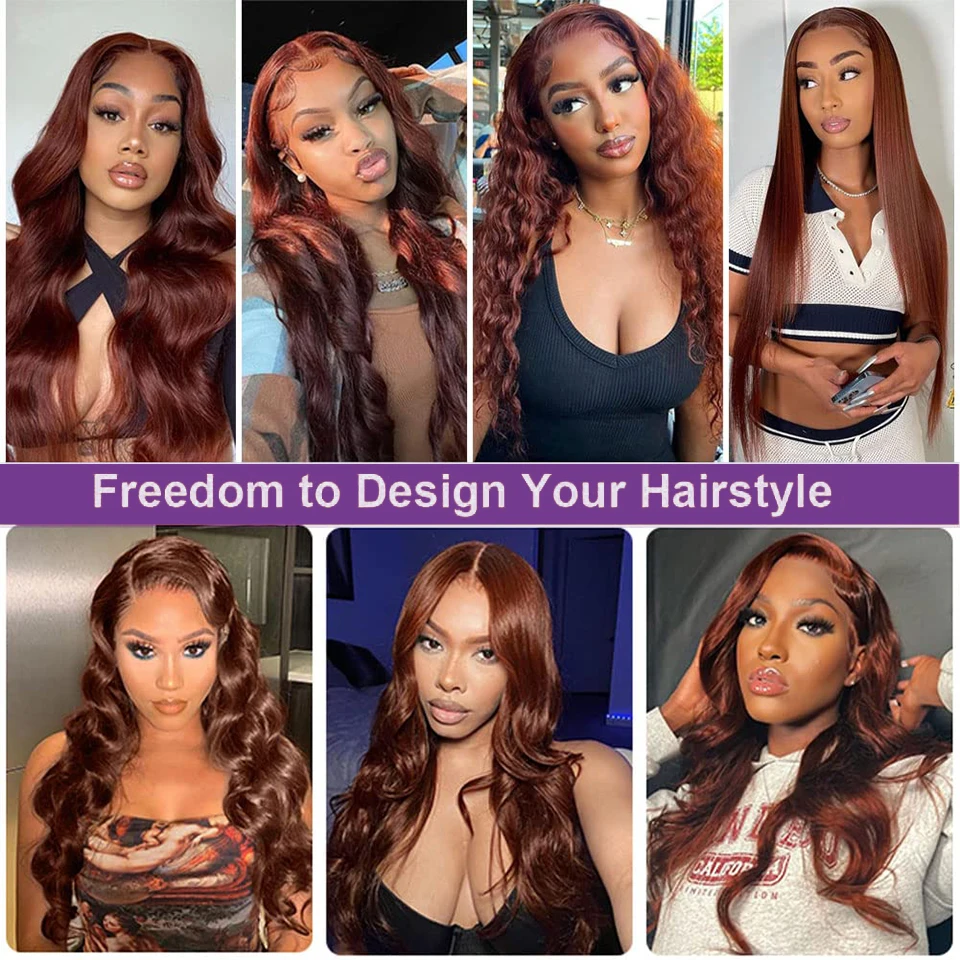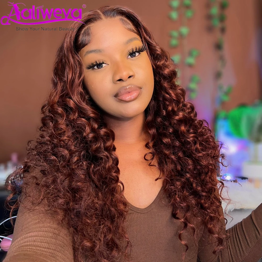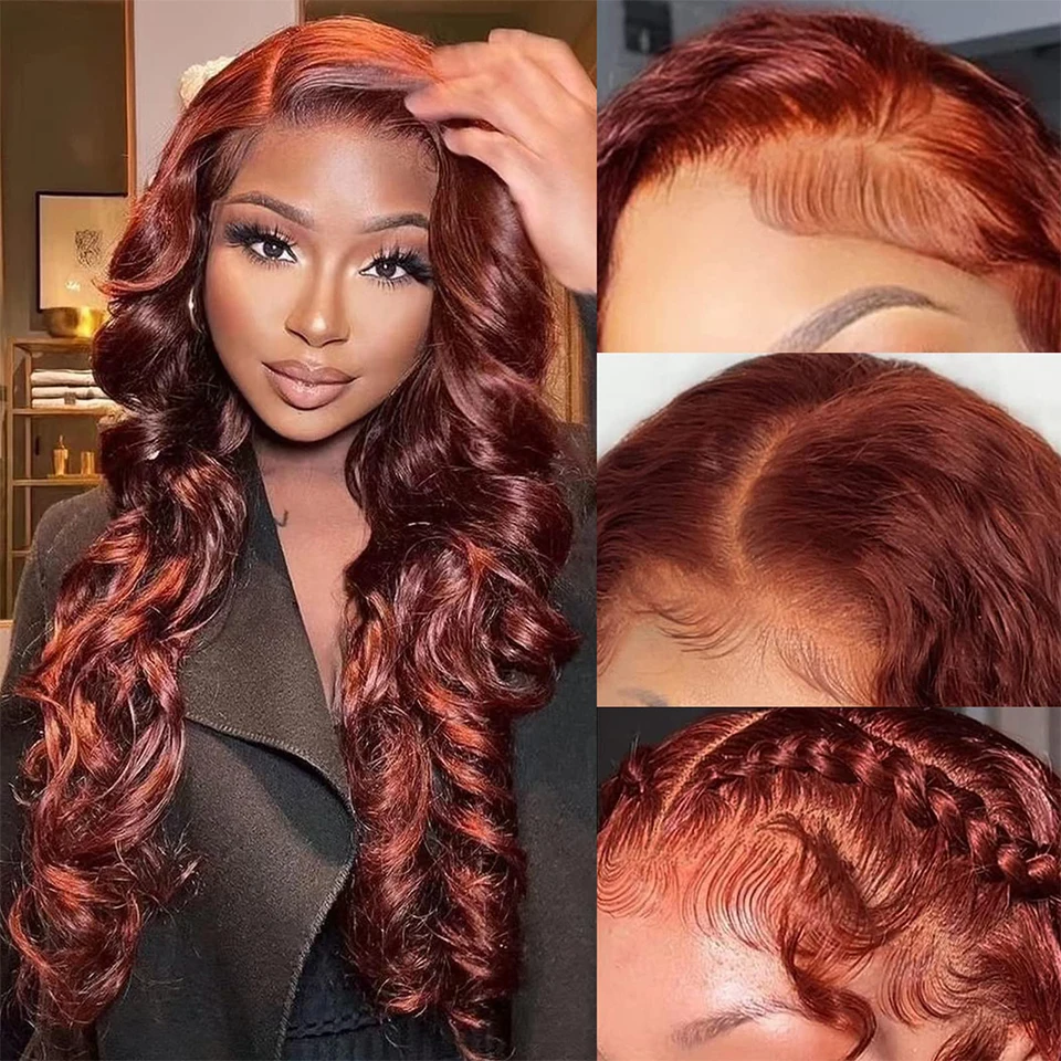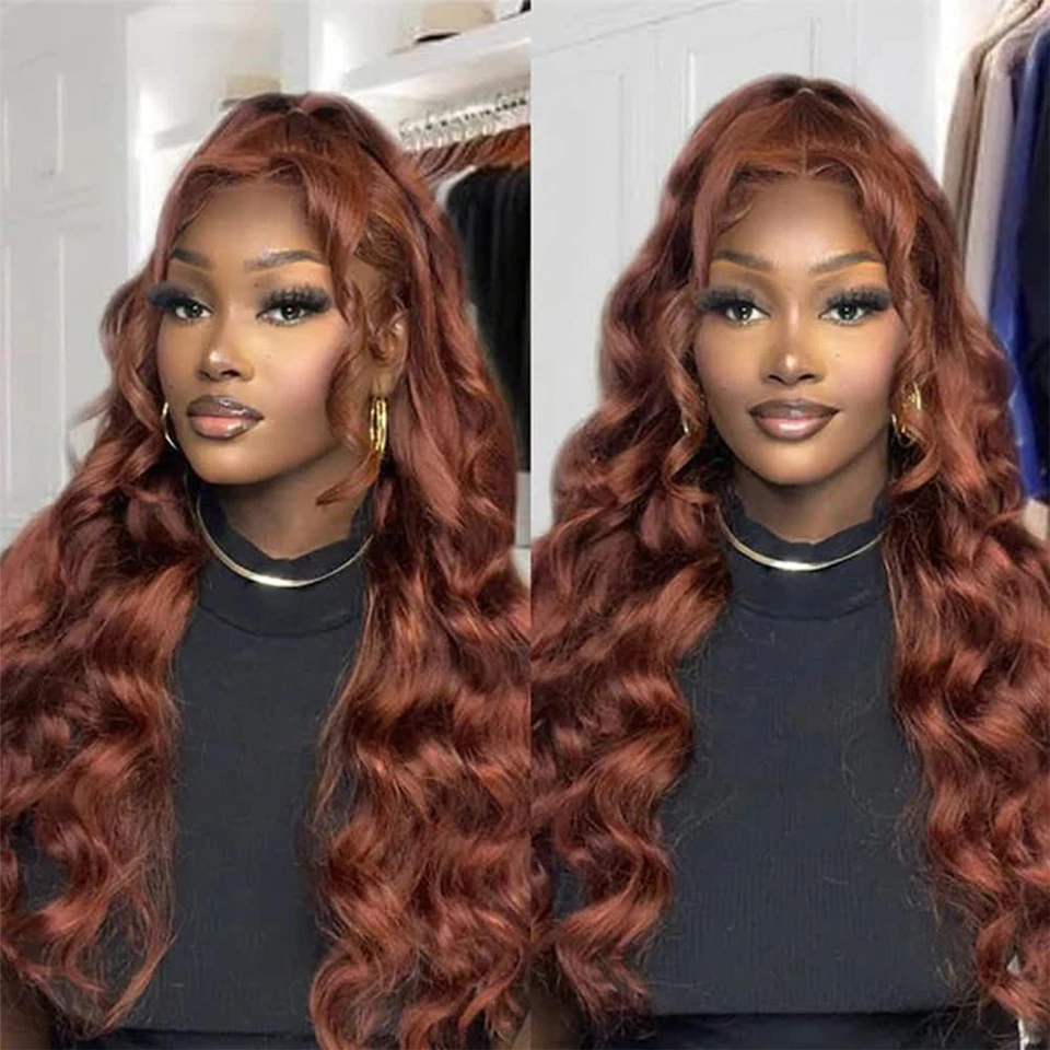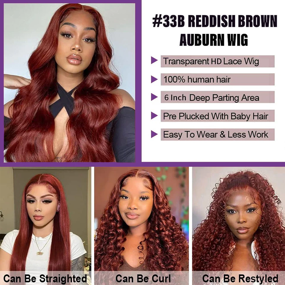 Reddish Brown Loose Deep Wave Lace Front Human Hair Wig For Women 200% Density Brazilian Remy Hair Transparent Lace Frontal Wigs