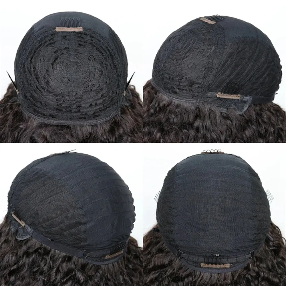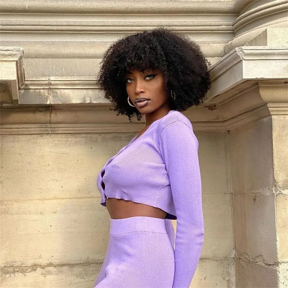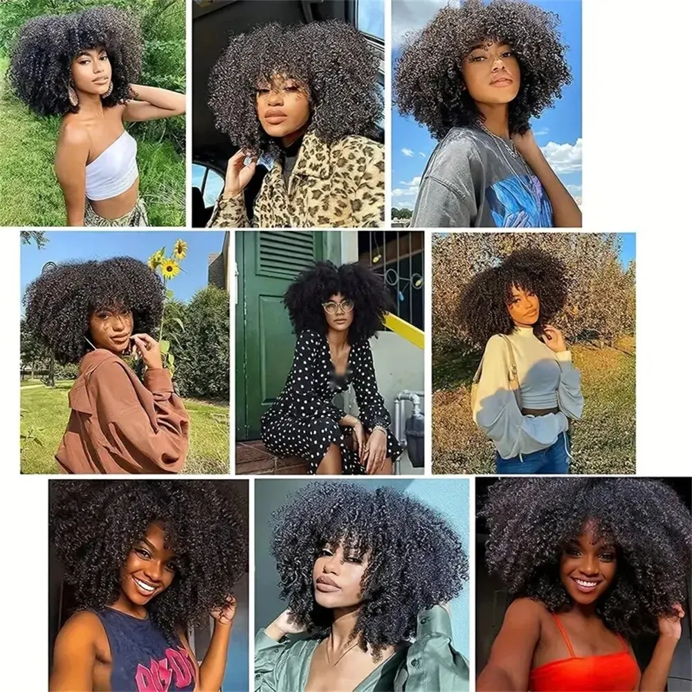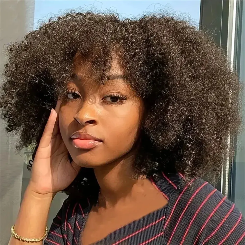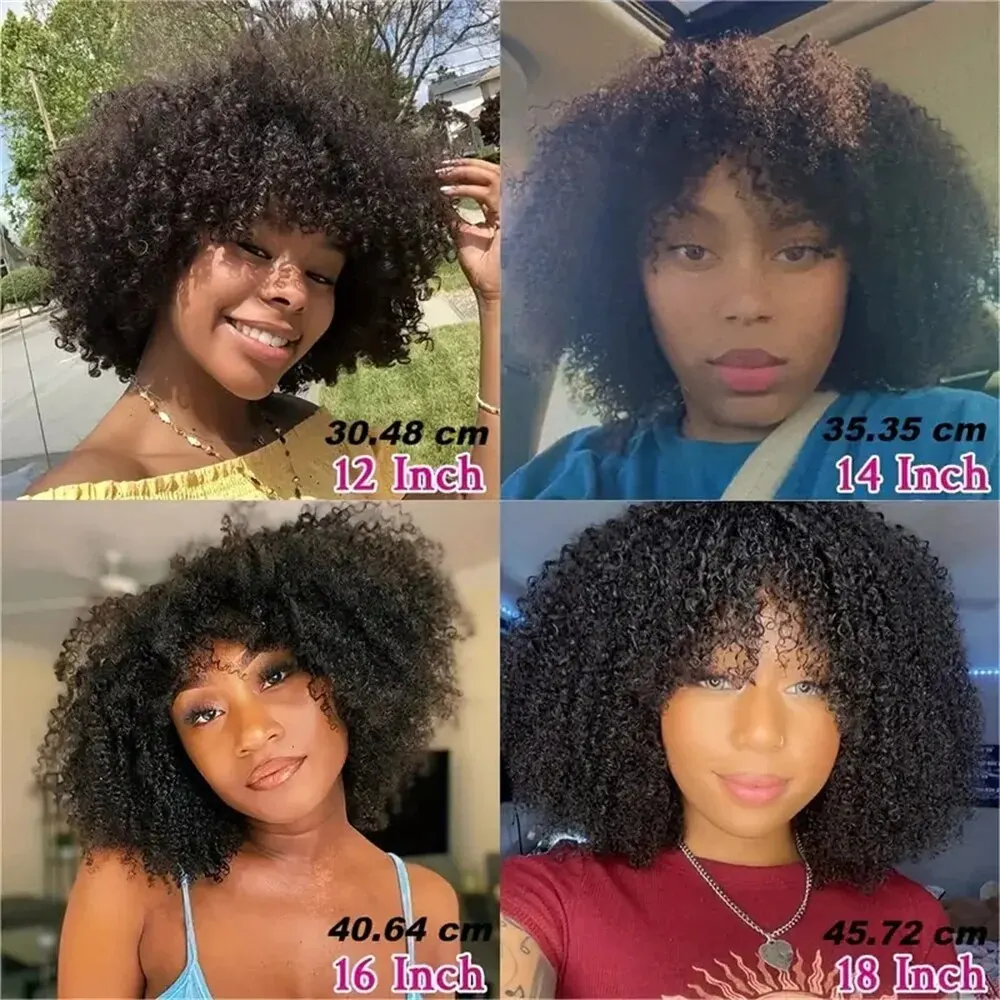 Short Afro Kinky Curly Wig With Bangs Ready to Go Human Hair Afro Kinky Wig Glueless Full Machine Made Wig 200% Density Remy