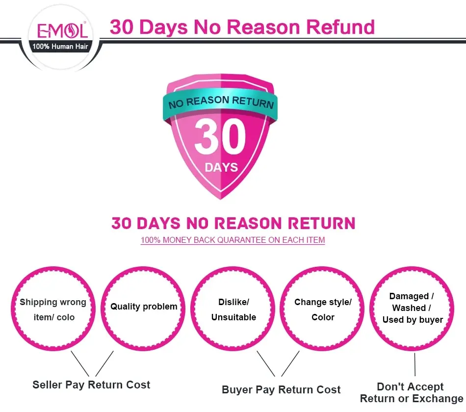 • All returned products will be fully refunded as long as they have not been used or damaged.