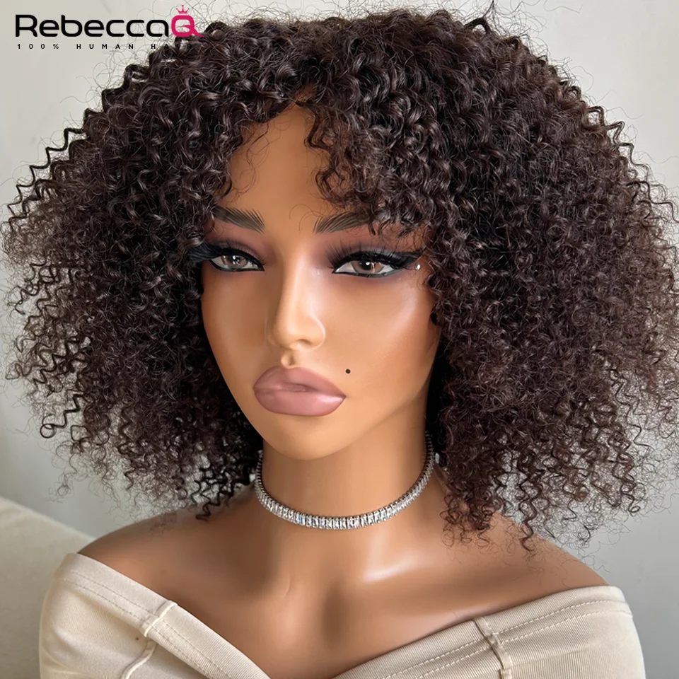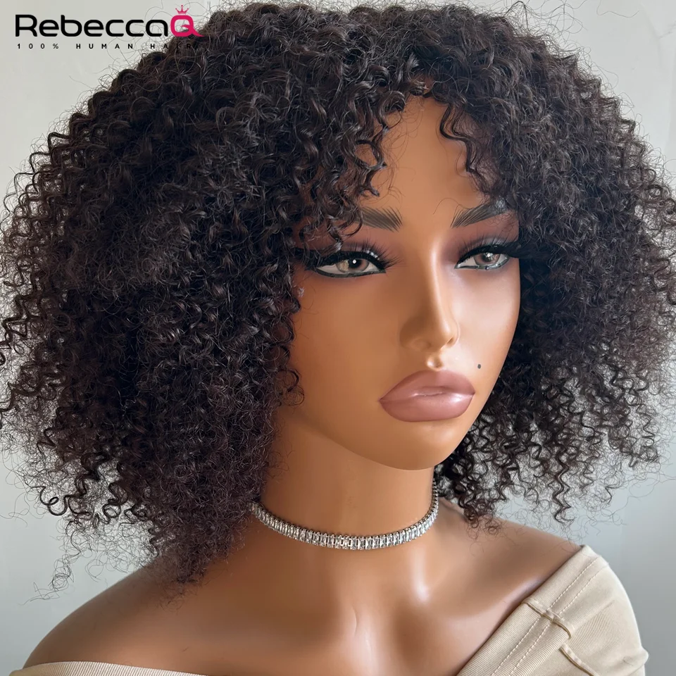 Short Curly Afro Wig With Bangs For Black Women Human Hair Afro Kinky Curly Wig Wear to go Glueless Full Machine Wig 250 Density