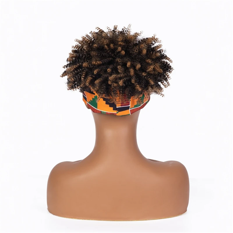 Short Kinky Curly Headband Wigs for Black Women Afro Curls Blonde Wigs with Scarf Natural Curly Cosplay Wig Synthetic False Hair