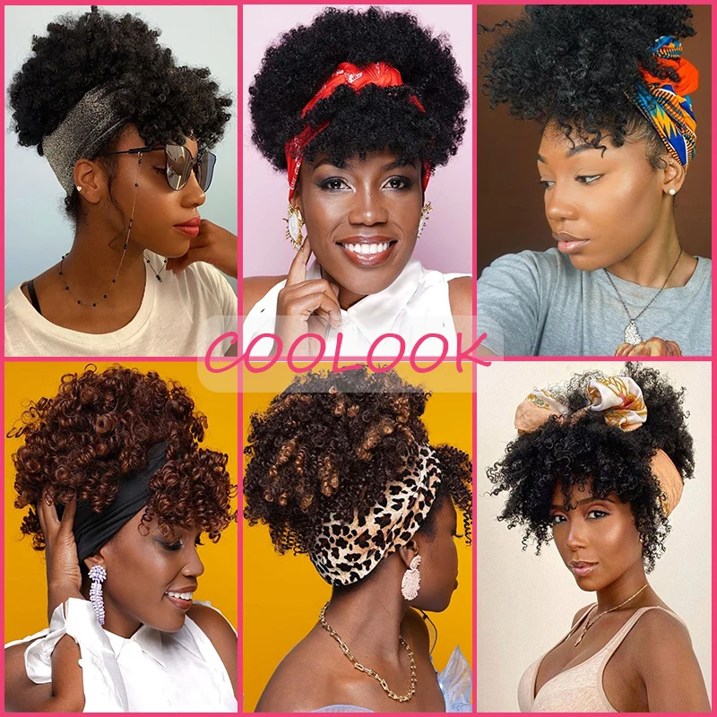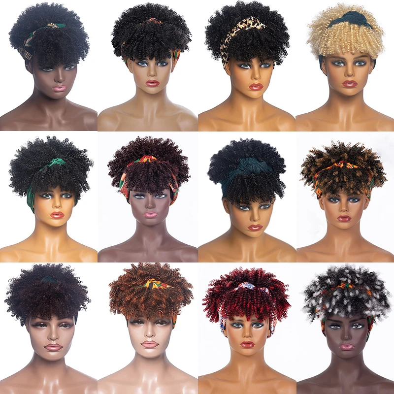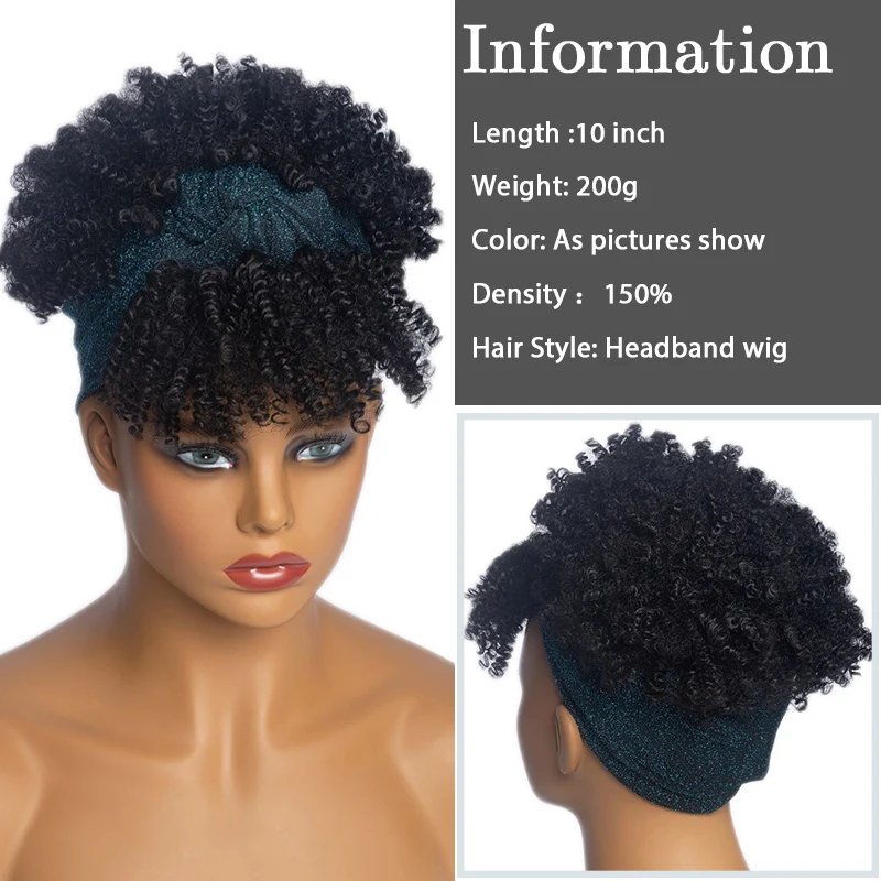 Hair Type: Synthetic Headband Wigs,Afro Kinky Curly Turban Wig