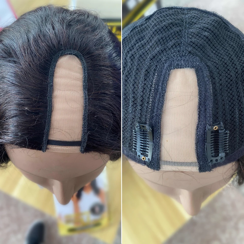 180% Density Human Hair Wigs For Women Loose Deep U Part Wig Short Brazilian Hair Wigs Glueless Natural Black Body Wave U Part Wigs