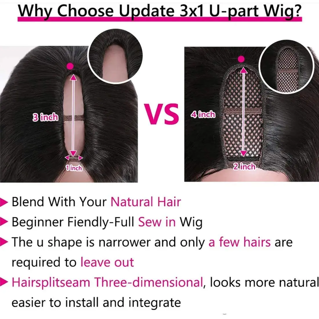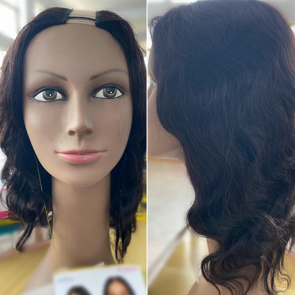 Sleek Human Hair Wigs For Women Loose Deep U Part Wig Short Brazilian Hair Wigs Glueless Natural Black Body Wave U Part Wigs
